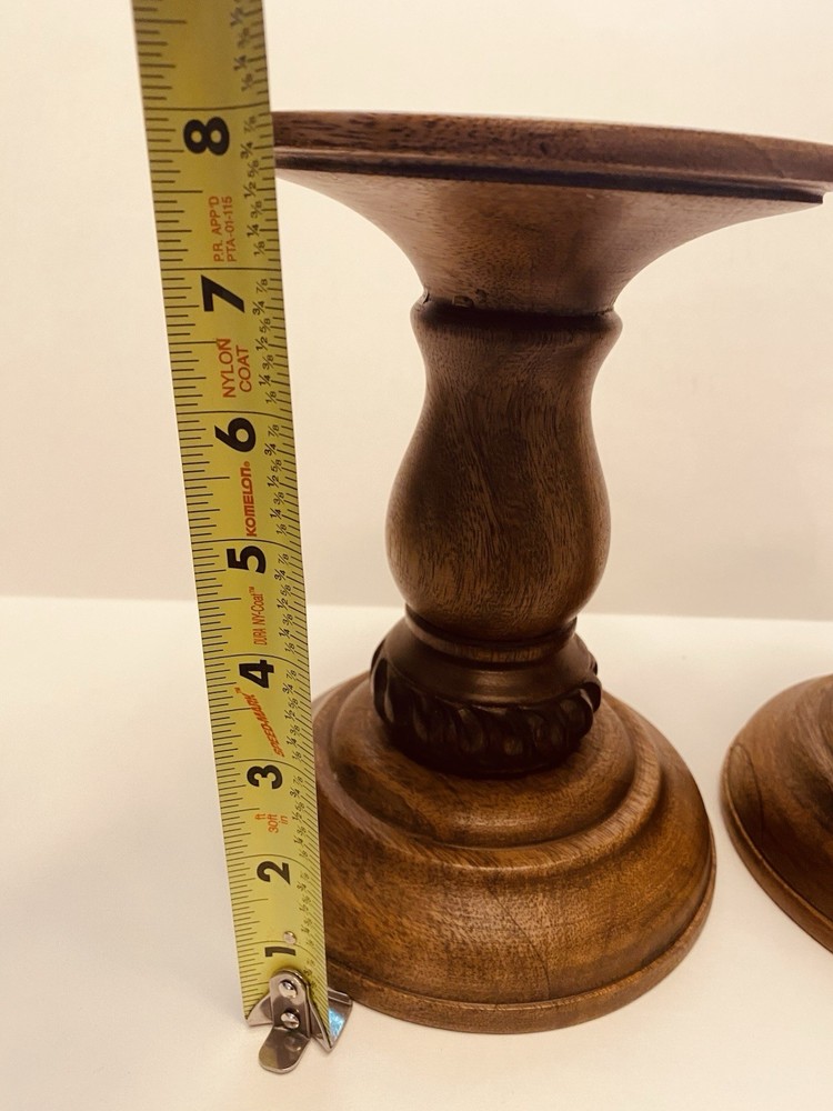 Crafted with a timeless British Colonial aesthetic, this Pottery Barn Hurricane candle stand exudes an air of sophistication and warmth. Its sturdy wooden construction, complete with a smooth finish, promises both durability and a touch of natural elegance. Measuring at a comfortable medium size, this piece is ideal for showcasing pillar candles or flameless/LED alternatives, making it a versatile addition to any room. The stand features a classic cylindrical shape with dimensions of 8 inches in height and 5.25 inches in width, ensuring a perfect fit for your favorite candles. The decoratively designed hurricane is suitable for various settings, including the bedroom, dining room, foyer, guestroom, indoor spaces, kitchen, living room, sunroom, and entryway. With its weight of 3 pounds, this free-standing piece is easy to place and enjoys a stable presence on any surface.