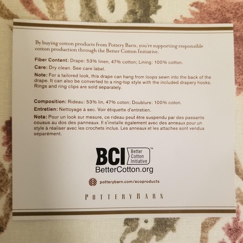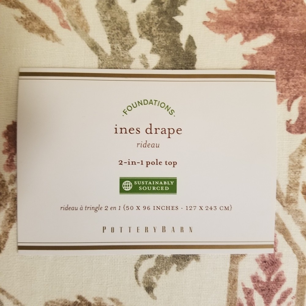 Pottery Barn Ines Printed Linen Cotton Curtain 50x96 Cotton Lining Red Multi. 6524358