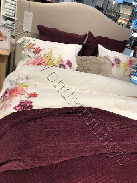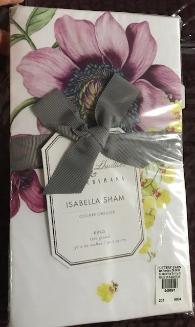 POTTERY BARN ISABELLA DUVET SET A hand-painted floral artwork is brought to life in this romantic bedding. The Isabella Duvet Cover & Sham mixes beautifully with solid shams in coordinating hues for a garden-like look. Fashion designer Monique Lhuillier brings her sophisticated style in this bedding for Pottery Barn. Woven of 100% organic cotton; Organic cotton is grown without the use of toxic and persistent pesticides and synthetic fertilizers. Duvet and shams reverse to solid. Duvet features a hidden button closure with inner ties that keep insert in place; sham features an envelope closure. Machine wash. Imported. Auction is for KING Duvet cover with TWO STANDARD SHAMS. Item is BRAND NEW in ORIGINAL PACKAGING! A d d i T i O N a l P h o T O s A v a i L a B Le U p O n R e Q u e S T PURCHASED DIRECTLY FROM POTTERY BARN. AUTHENTIC.