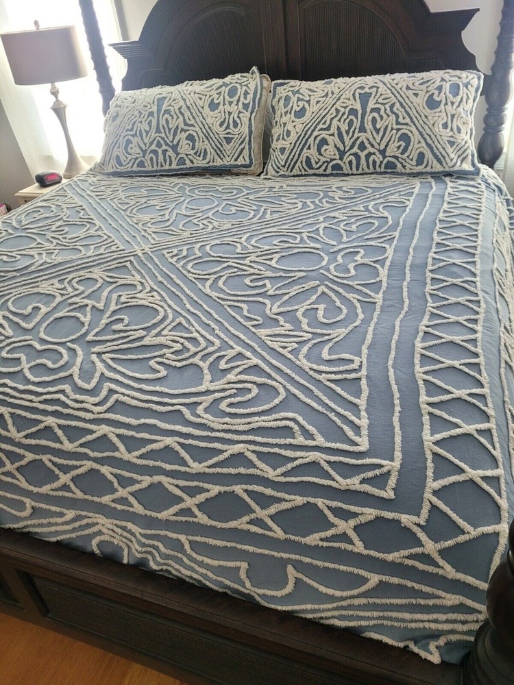POTTERY BARN CANDLEWICK DUVET The candlewicking embroidery technique gives textural richness and vintage-chic style to our Isabelle Collection, and the intricate pattern adds depth and dimension to your bed. Sewn of silky cotton sateen, this bedding feels soft against the skin while providing lightweight warmth. Made from 100% cotton sateen. Duvet and sham reverse to solid. Duvet features a hidden button closure with inner ties that keep insert in place; sham features an envelope closure. Machine wash. Imported. Auction is for QUEEN duvet with TWO STANDARD Shams. Color available is CHAMBRAY BLUE. Item is BRAND NEW in ORIGINAL PACKAGING! A d d i T i O N a l P h o T O s A v a i L a B Le U p O n R e Q u e S T PURCHASED DIRECTLY FROM POTTERY BARN. AUTHENTIC.