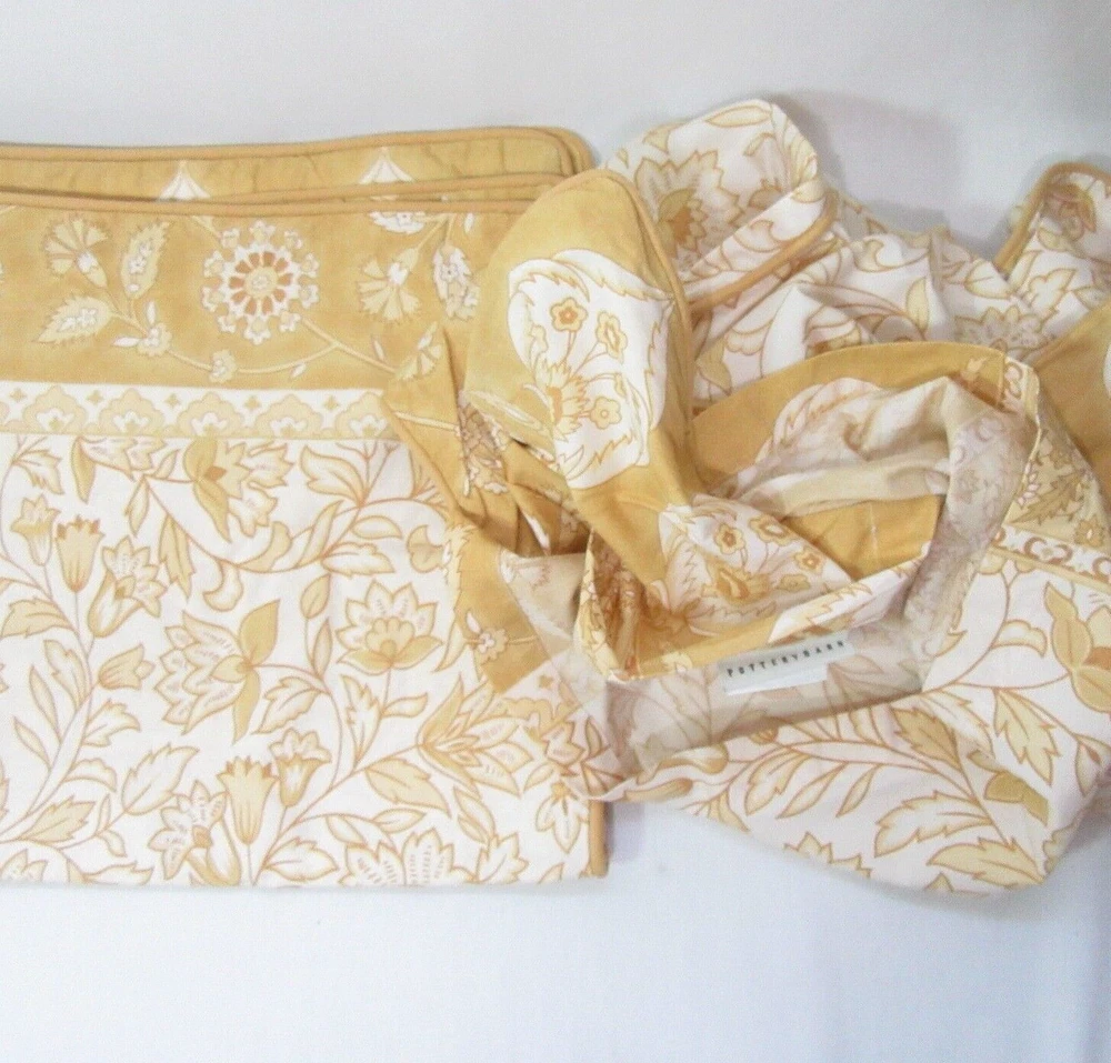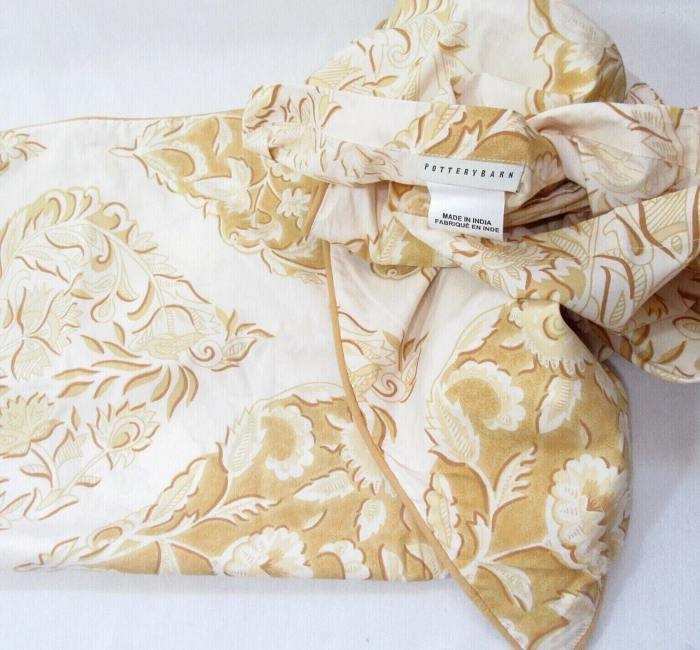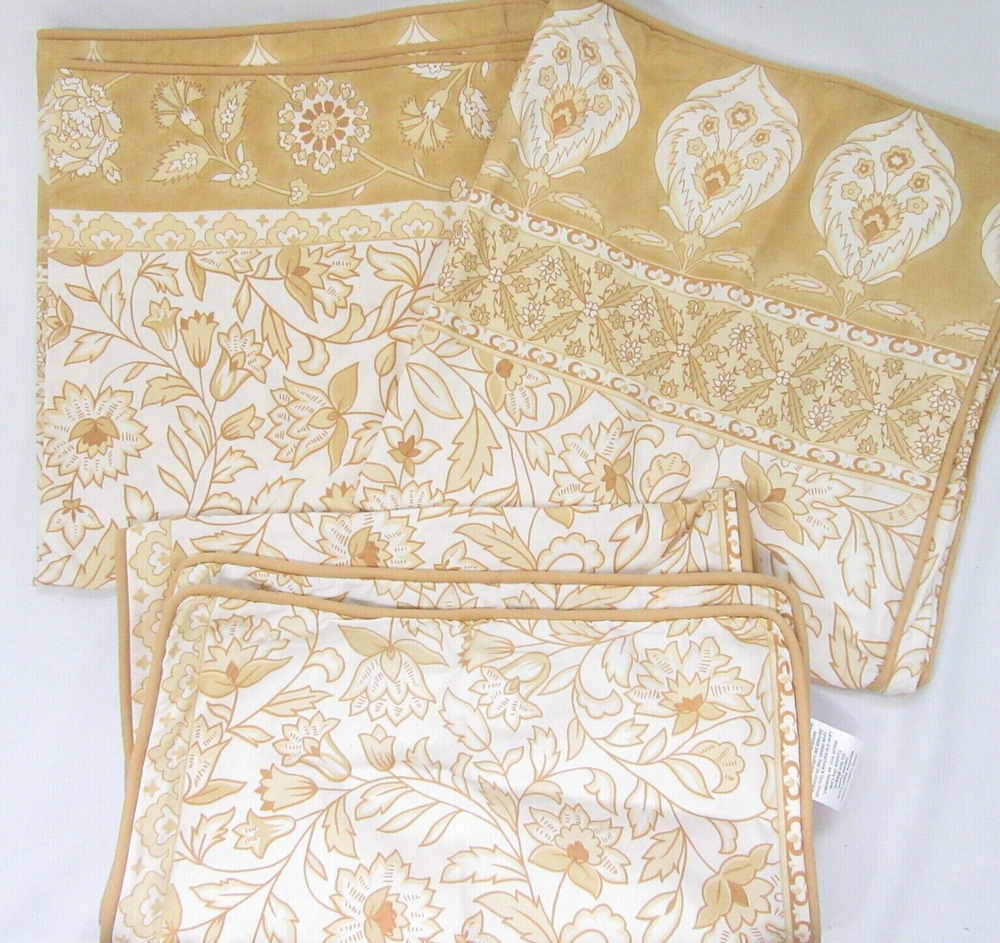 Pottery Barn Isabelle Medallion Floral 5-PC Euro Standard Shams & Pillow Cover Golden colored medallions and floral designs on a cream/off-white ground. Shams reverse to same with envelope closure. Pillow cover reverses to same, zip closure. Includes: 4 Shams & Pillow Cover . Make offer/ Don't just watch-No price adjustments will be made. Size/Measures: Euro (2pc) / 26" x 26" Shams, Standard (2pc) / 20" x 26" Shams . Pillow 14" x 36" Cover. No flange /piped edges . Measurements are approximate. 100% Cotton percale, Machine wash, Made in India. PB Color term: Yellow (golden & cream). Selling as set/prefer not to separate. Feature (first only) picture not actual item; depicts bedding collection. Our items are stored in bags, on shelves & in bins, with all other items. Clearly appears to be new - tags/fabric still crisp; no signs of use or washing. Items are stored offsite and are described in our honest opinion. New / Never used, no packaging. No rips, tears or stains. No prior history. How this works...Buy It Now or make an offer. We don't send offers or coupons . Again, price will not change. Learn about making offers or buy it now . J ust watching accomplishes nothing! Item w ill end on eBay i n 30-DAYS ! Please be aware that items are only posted for a limited time and may end at any time and/or may be found elsewhere. Please read full description and all policies before purchases. Ask questions prior to buying, we are here to help. Research before buying as we do not accept returns. How this works: Buy It Now or make an offer. Just watching achieves nothing! We do not send offers/coupons or play pricing games. Research was done before listing. Item will end if no purchase/offers are made. We can only post so many listings. We do our best to take accurate pictures & describe items in detail. Expect used items to show use. Many factors apply to offer competitive and fair prices based on selling rates. Thanks for supporting small business. PAYMENTS - Due at time of sale/accepted offers are automatically deducted. SHIPPING - Packages ship within two business days after sale or cleared payment is received. RETURNS - Items are sold as is/No returns accept! Buyers are expected to read ad and policies before purchasing. FEEDBACK - Please take a moment out of your busy day to leave us positive feedback. Return feedback will only be provided afterwards. Act Fast! What is here today may be gone tomorrow. The time to purchase is while posted! Listing may end at any time. We do not respond about ended or relisting items. ITEMS FOR SALE: Vintage Suite offers: vintage, previously owned and new items. Buyers are required to read full description and policies before purchases. If buying a used item, expect it to show signs of use. Even if clean, used linens should be washed. We don't wash items unless noted and have no allergies or sensitivities. Color-matching for used linens is discouraged as colors may not be exact. Due to number washings, different soaps and wash styles, each item will differ in color and condition. We do not advocate buying used items if you have allergies or are sensitive to smells; it may have laundry scents or pet/other odors. No history if item was from a pet/smoke free home; we are not. BUYING GUIDE: Please read full description and policies. Ask questions if unsure of anything. We are here to help. Check condition of item. If buying a used item, expect it to show some signs of use unless listed otherwise. C heck any notes for added info and do not presume like-new condition unless posted as such. We do our best to take accurate pictures and describe items with research in advance. Items are described based on info provided in our opinion or research and do not claim to be an expert. Items may be marked for security to avoid scams. To avoid unforeseen issues, we advise buying early. We don't keep items forever, we live here! Enough time is given to make a decision/purchase. Item may end at any time if listed too long or excessively watched and / or may be found elsewhere. OFFERS: Please do not message about prices. The preset BIN and best offer/reserve/auto-decline prices don't change. Offers under reserve will be auto-declined. We offer competitive prices based on selling rates, condition, availability or cost. Research before buying; our items will not be sold 50% off or lower of selling and/or active listed price. We understand buyers watch items for many reasons. Watching is mostly an attempt to have seller reduce price; it does not persuade us. Items in your cart or just watching achieves nothing! We don't send coupons or offers. We can only post so much and will not pay to have them watched for years. Listing will end on eBay if no purchase is made; even with perpetual interest/watchers and discourage curious/forever/career watching. PAYMENTS: Total due at time of sale. If an offer is made and accepted, eBay deducts payment automatically. By making payment, you enter into a legal binding contract. You acknowledge to have read the complete listing and agree to all terms, conditions or warranty. RETURNS: All sales are final unless posted otherwise! Returns are not accepted unless qualifies as significantly not as described. This does not mean normal use; any excessive flaws are noted. Used items will show signs of use and functions as its intended purpose. We do not accept returns for smells and have no allergies or sensitivities. Every attempt is made to show exact colors. Returns for color matching, name/shade terms or how it appears on your screen are not accepted. Wrong size, change of heart found cheaper are not returnable. Know what you are buying before claiming otherwise. If there is a problem, email us through messaging (not feedback) before opening a return claim; send photos and explain issue. We will work to resolve the problem. Fraudulent claims are reported. SHIPPING: Packages ship within two business days of your completed payment. Allow up to 14-days from