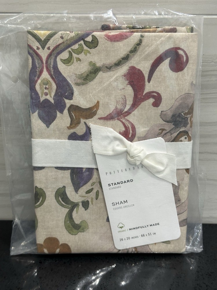 Add a touch of elegance to your bedroom with this beautiful Pottery Barn Ivana Print Standard Size Sham. The sham features a stunning floral pattern in multicolor, which will complement any bedding set. Made of a high-quality blend of organic cotton and linen, it provides a comfortable and luxurious feel. This pillow sham measures 26” x 20” and fits a standard-sized pillow perfectly. It is perfect for adding a pop of color and style to your room. Whether you are looking to update your bedding set or simply add a few decorative pillows, this Pottery Barn Ivana Print Standard Size Sham is an excellent choice.