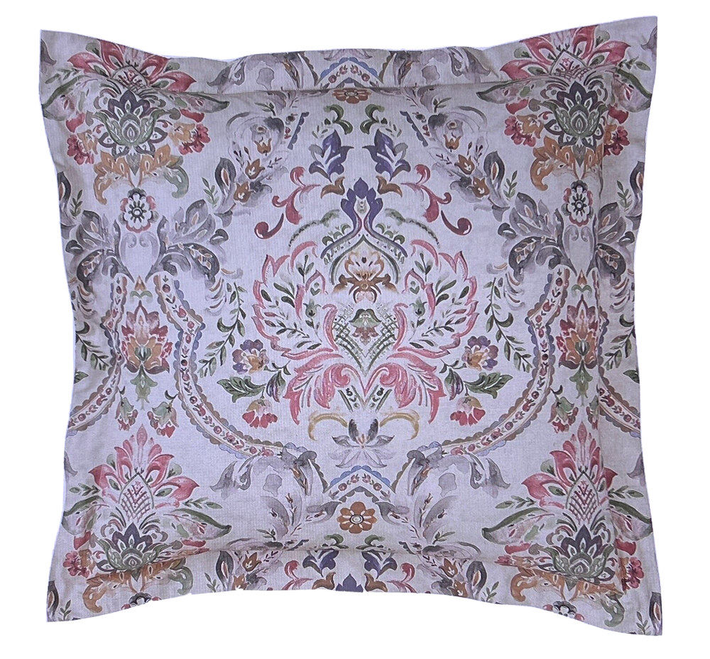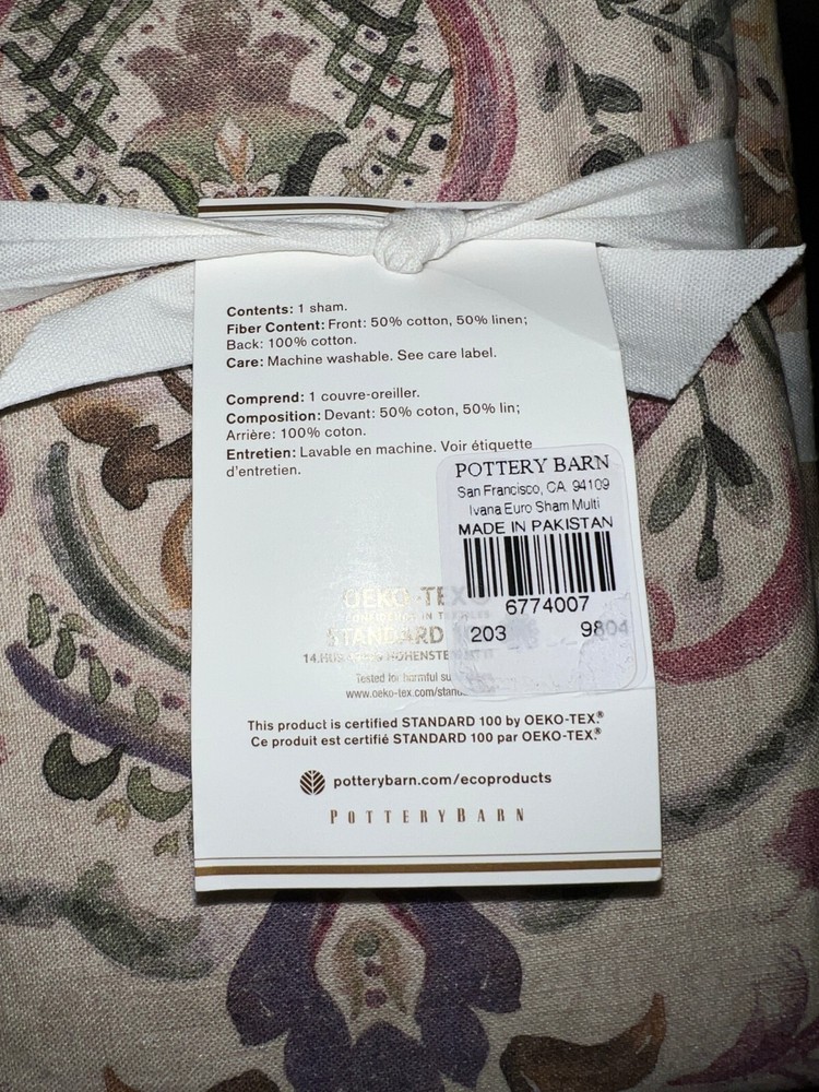 Pottery Barn Ivana Multi Print Shams - Linen / Cotton includes: one Euro Sham New with tags Ivana Print front: 50% Linen / 50% Cotton Back is solid color - 100% cotton Please let me know if you have any questions. no returns . Thanks for looking! Large medallions are inspired by a traditional painterly damask, featuring updated hues for a timely feel. The Ivana Organic Shams add a charming accent to the top of the bed. Front is woven of 50% cotton and 50% linen; reverse is 100% cotton Sham features an envelope closure Reverses to solid Machine washable Euro 26" x 26" square