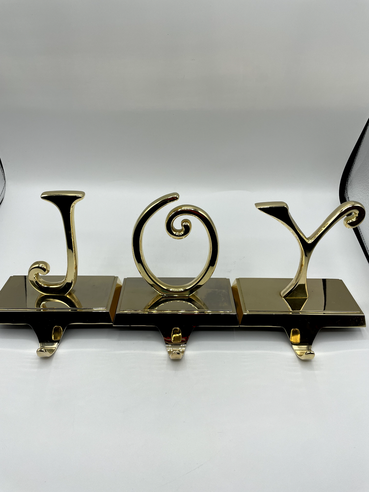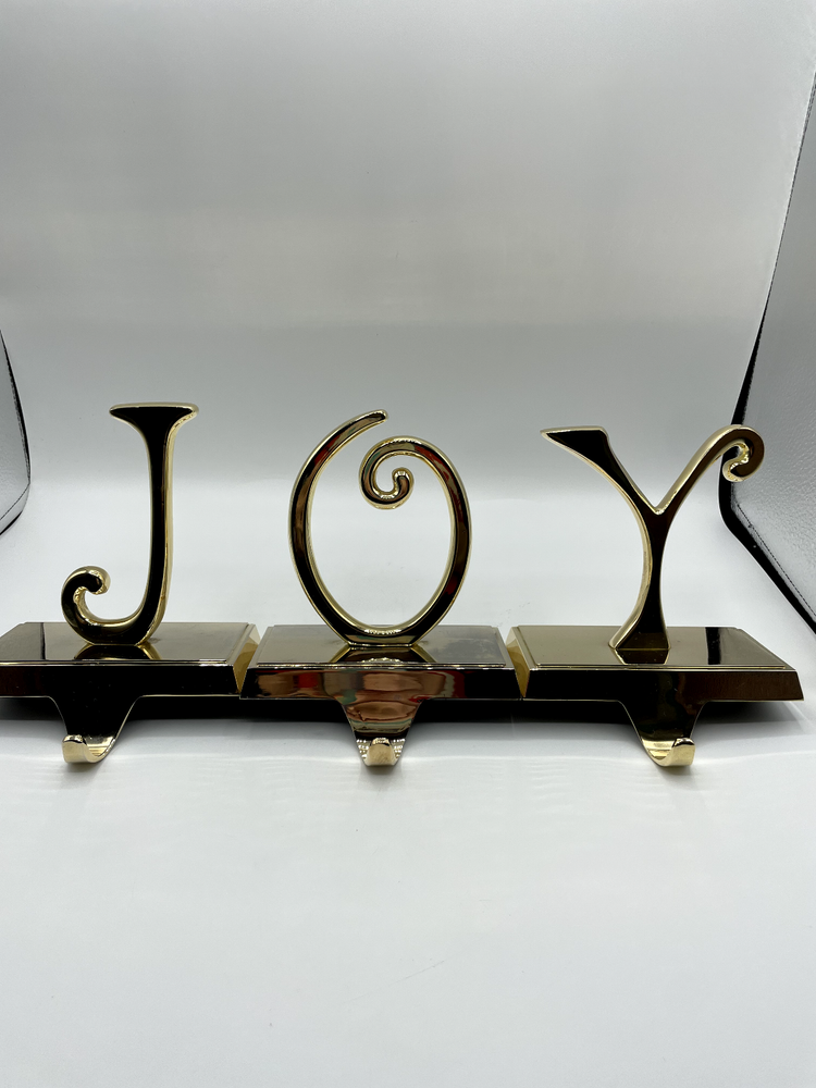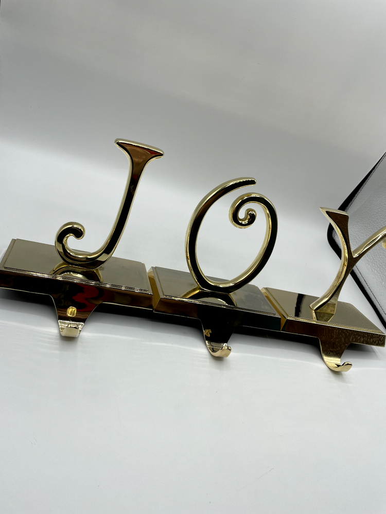 Pottery Barn JOY Stocking Holder 3 pc Set Weighted Silver Tone Christmas Bs256 used: good used condition - please check pictures