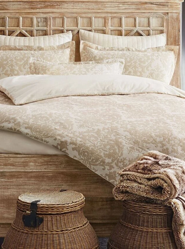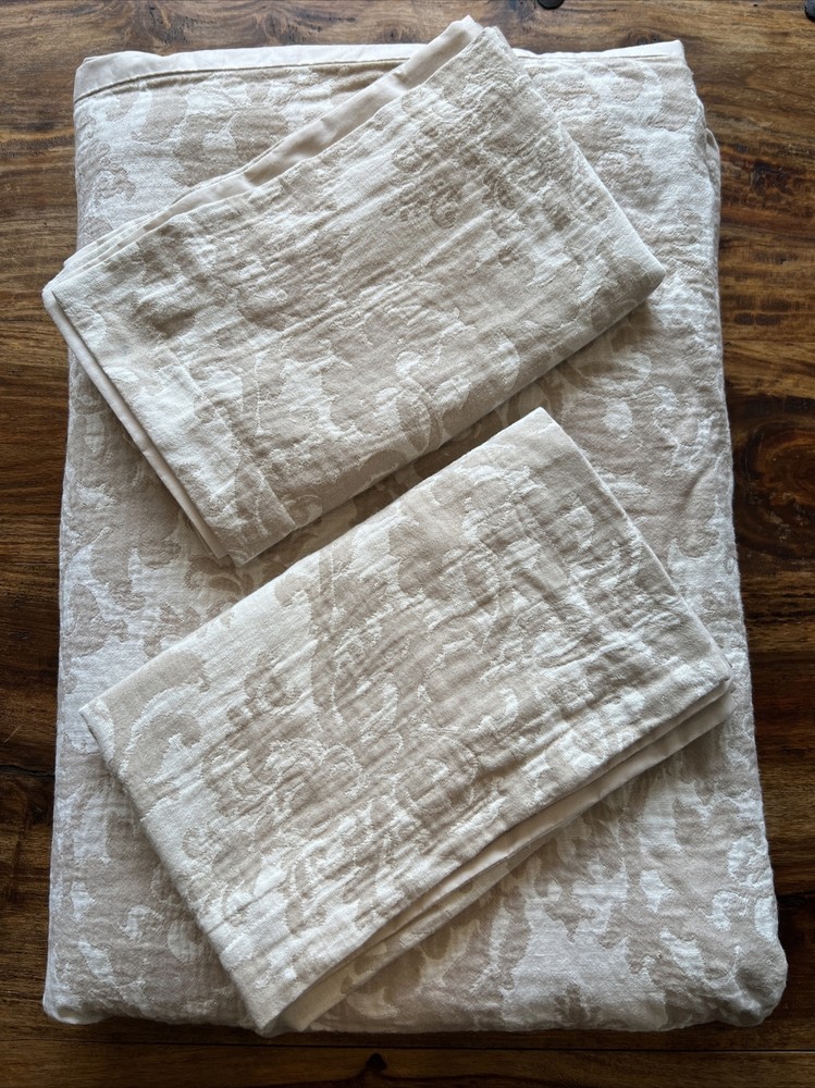 Pottery Barn Jacquard Medallion Cotton/Linen Duvet Cover + Shams Queen Tan Ivory Great condition, freshly washed - you won't be disappointed! Tons of life left....
