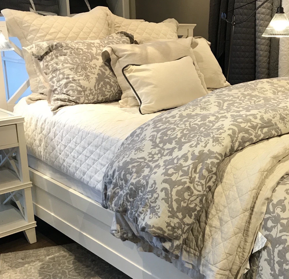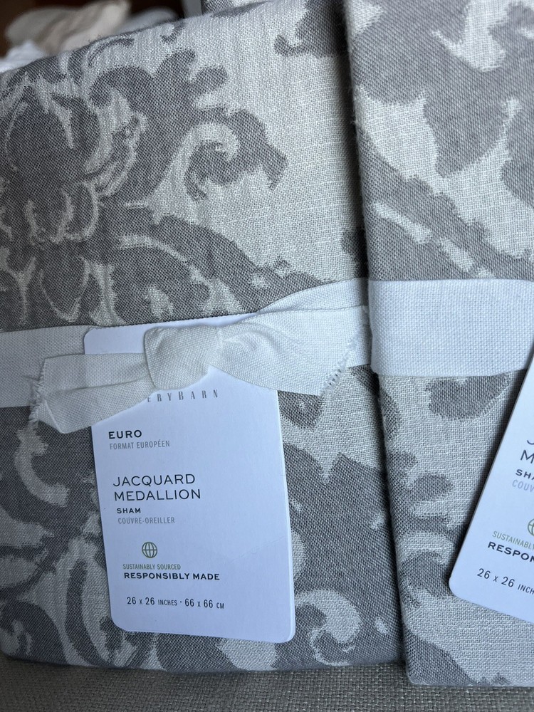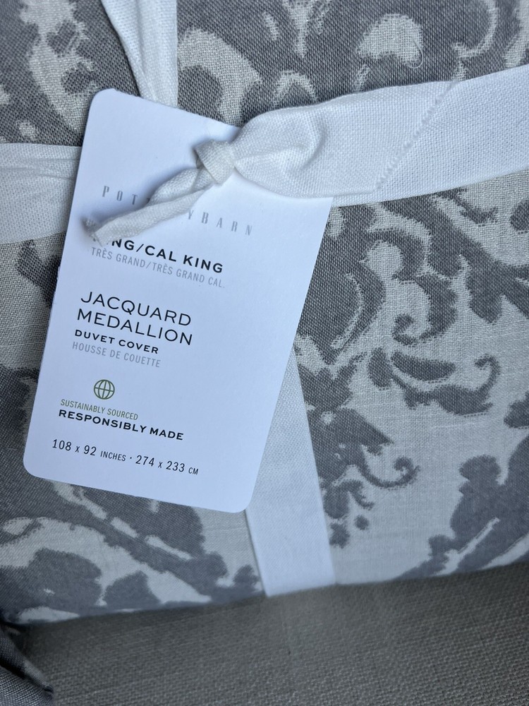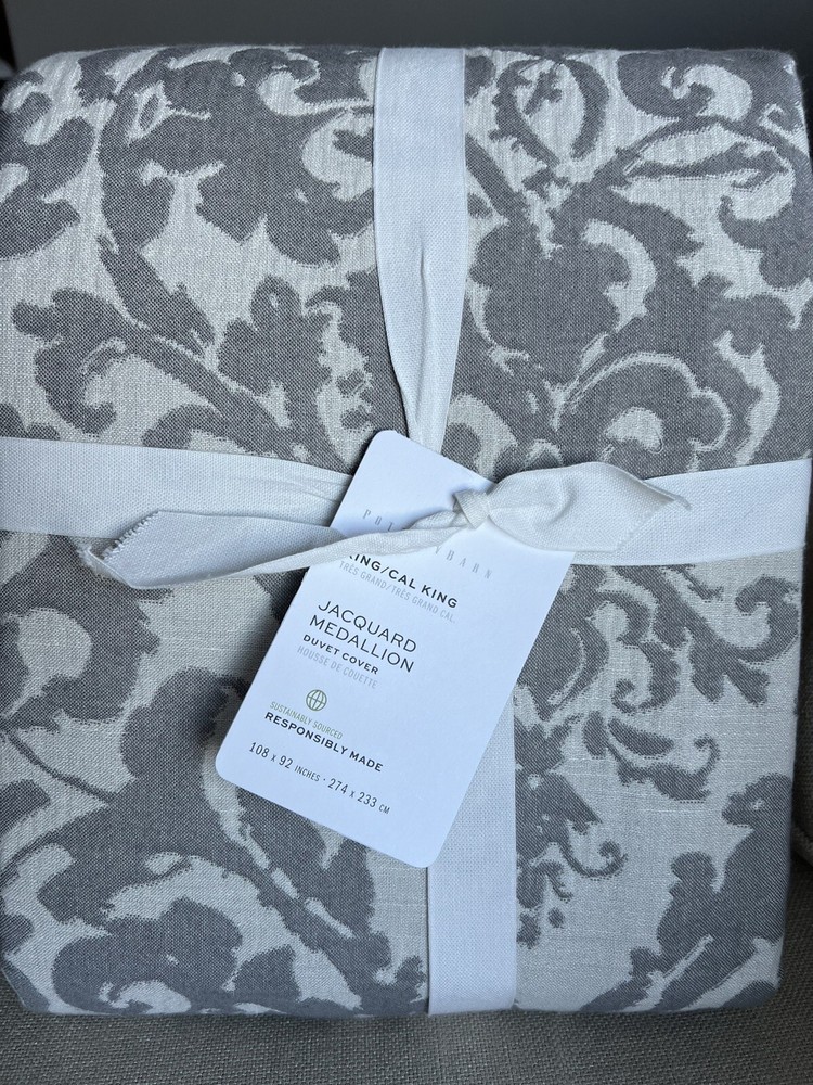 Pottery Barn Pottery Barn, a division of Williams-Sonoma, provides casual furnishings and textiles designed to delight and inspire the imagination. King / Cal King Duvet Cover & 2 Euro Pillow Shams Front Fabric: 45% Rayon, 38% Cotton, 17% Linen Reverse Fabric: 100% Cotton Solid Care: Machine washable This posting is for a duvet cover and 2 pillow shams, the insets and other items are not included. The photo's are of the actual item(s) Please ask all questions prior to purchase Stored in a smoke free environment Photos: We try our best to adjust the lighting to capture colors accurately; however colors can differ in photos depending on lighting and the devise used for viewing. Before purchasing, we recommend reviewing the item on the products website. Shipping: Shipping is offered to the confirmed address on record. Please make sure the shipping address is accurate before making a purchase. For your convenience tracking numbers are uploaded to eBay once shipped. Product may be shipped with Signature Confirmation. Returns: Please contact us if there is a problem with the item(s) you receive within 14 days of receipt of the item. Refunds are offered if returned in the original package (as packaged by the manufacture), unused and with tags attached. Shipping costs will be subtracted from the refund. International Shipping: eBays Global Shipping Program is offered for International Shipping. Import duties, taxes and charges are not included in the item price or shipping costs. These charges are the buyer's responsibility. Please check with your county's customs office to determine what these additional costs will be prior to bidding or buying. Thank you for looking!