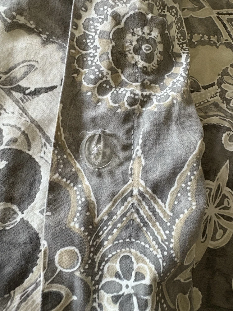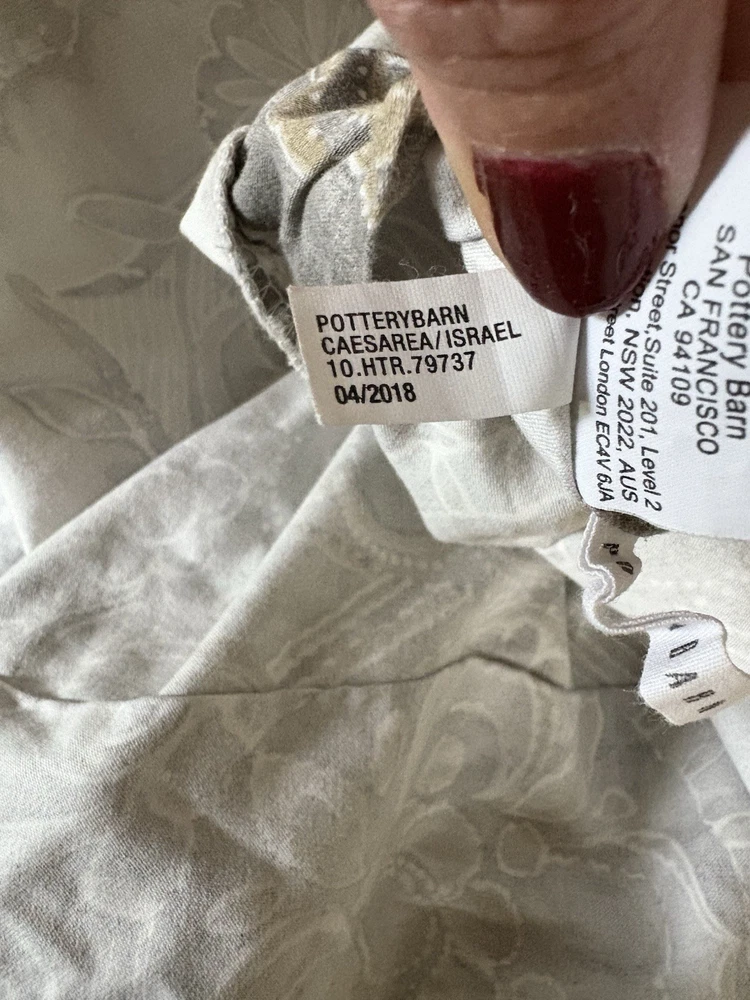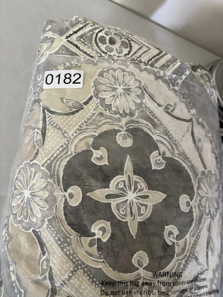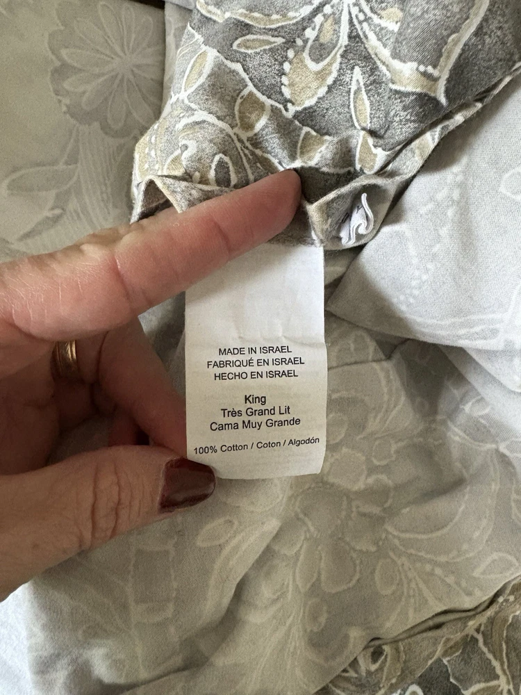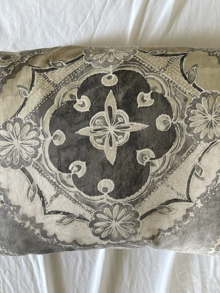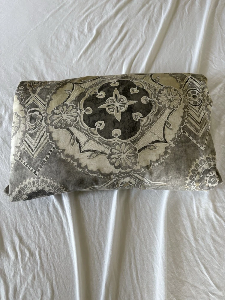 The Pottery Barn Jacquelyn Medallion Duvet Cover in Gray is a luxurious addition to any bedroom. Made from 100% cotton, this king-sized duvet cover features a beautiful medallion pattern in a soothing gray color. With a roomy length of 104 inches and width of 90 inches, this duvet cover from the Pottery Barn Jacquelyn collection is both stylish and comfortable. Easy to care for with machine wash instructions, this duvet cover is a perfect choice for anyone looking to add a touch of elegance to their bedroom decor. The measurements were approximate laying flat on the king size bed. There are no visible flaws.