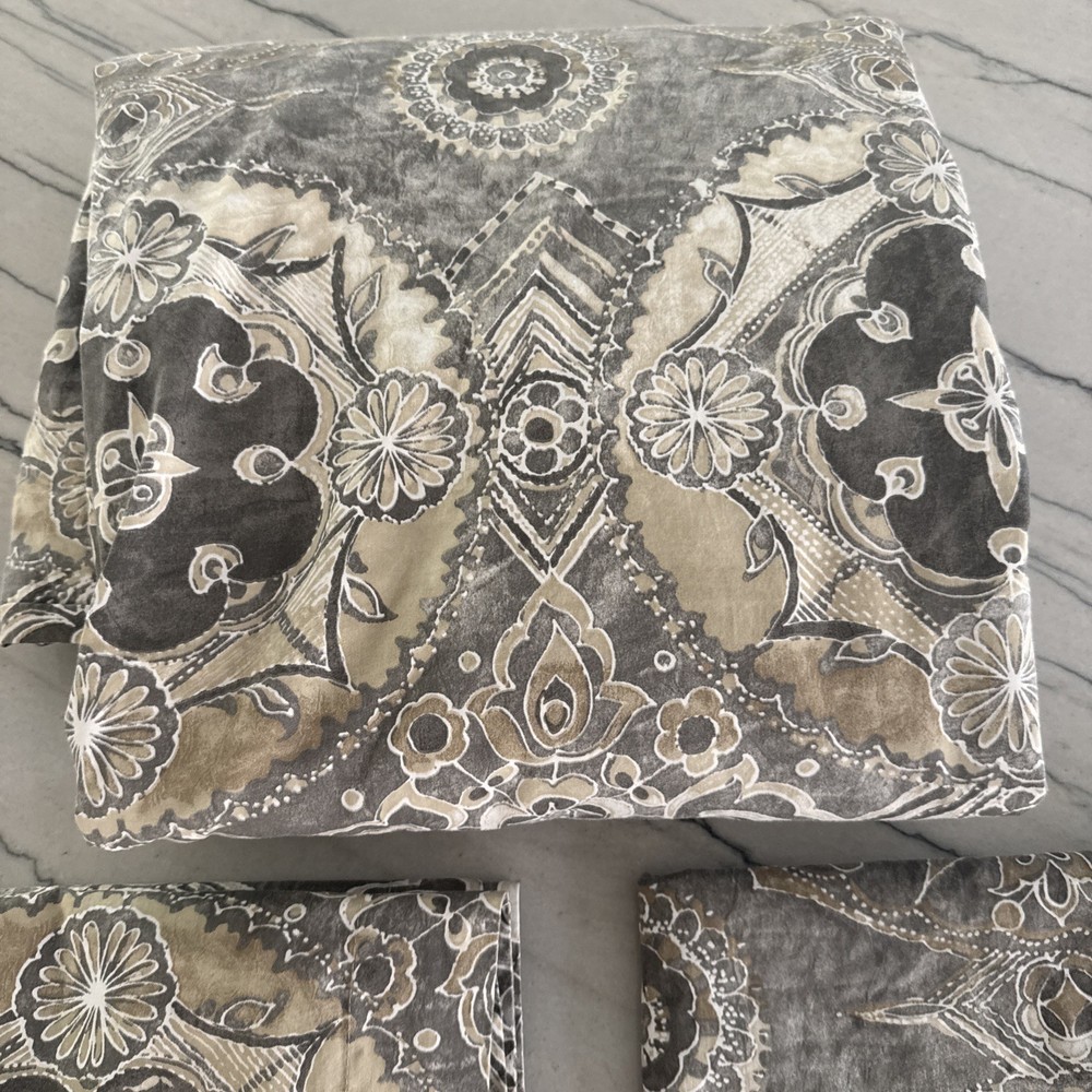 Pottery Barn Jacquelyn Medallion Sateen King Duvet Cover & 2 King Shams Gray. Very very nice pre-owned condition....