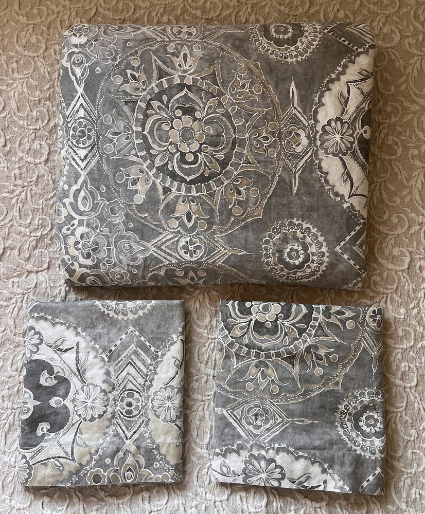 This duvet set is absolutely stunning—the Jacquelyn Medallion design adds elegance to any bedroom. The organic sateen feels incredibly soft and luxurious, making it a dream to sleep under. The set is in perfect condition, with no flaws, and the button closure on the duvet plus envelope shams make it easy to use. Love that it’s from a clean, pet-free home! Highly recommend for both style and comfort.