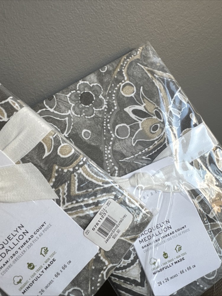 Pottery Barn Pottery Barn, a division of Williams-Sonoma, provides casual furnishings and textiles designed to delight and inspire the imagination. 2 Euro Pillow Shams Fabric: 100% Cotton Sateen, 350 Thread Count Care: Machine washable This posting is for 2 pillow shams, the insets and other items are not included. The photo's are of the actual item(s) Please ask all questions prior to purchase Stored in a smoke free environment Photos: We try our best to adjust the lighting to capture colors accurately; however colors can differ in photos depending on lighting and the devise used for viewing. Before purchasing, we recommend reviewing the item on the products website. Shipping: Shipping is offered to the confirmed address on record. Please make sure the shipping address is accurate before making a purchase. For your convenience tracking numbers are uploaded to eBay once shipped. Product may be shipped with Signature Confirmation. Returns: Please contact us if there is a problem with the item(s) you receive within 14 days of receipt of the item. Refunds are offered if returned in the original package (as packaged by the manufacture), unused and with tags attached. Shipping costs will be subtracted from the refund. International Shipping: eBays Global Shipping Program is offered for International Shipping. Import duties, taxes and charges are not included in the item price or shipping costs. These charges are the buyer's responsibility. Please check with your county's customs office to determine what these additional costs will be prior to bidding or buying. Thank you for looking!