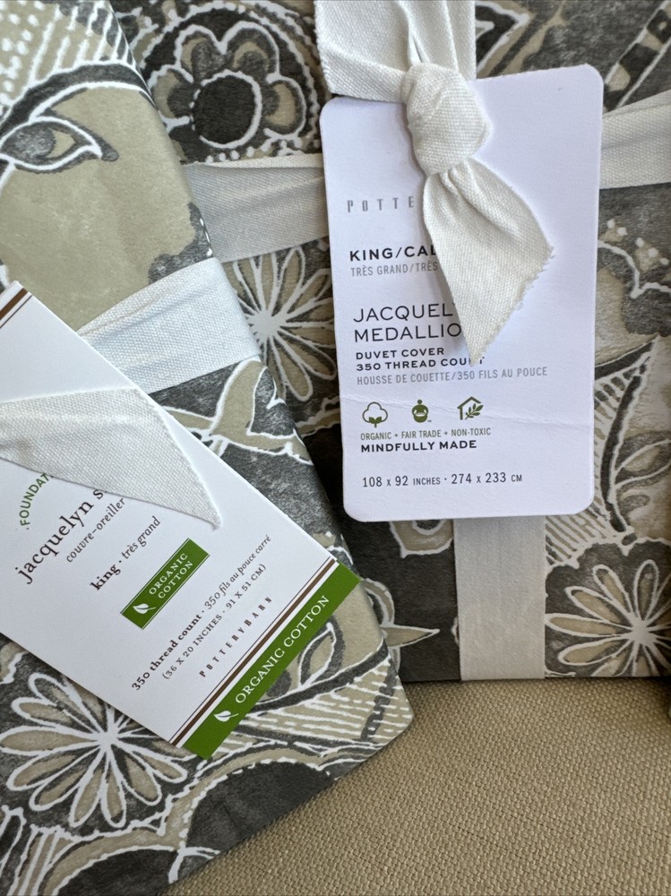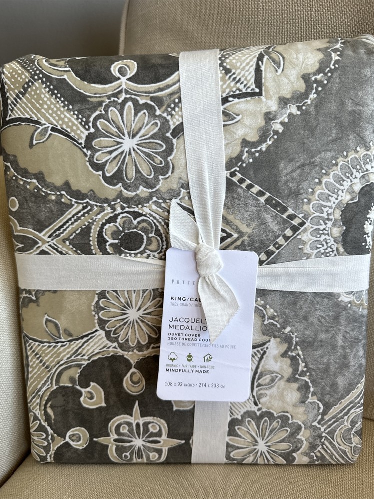 Pottery Barn Pottery Barn, a division of Williams-Sonoma, provides casual furnishings and textiles designed to delight and inspire the imagination. King / Cal King Duvet Cover & 2 King Pillow Shams Fabric: 100% Cotton Sateen, 350 Thread Count Care: Machine washable This posting is for a duvet cover and 2 pillow shams, the insets and other items are not included. The photo's are of the actual item(s) Please ask all questions prior to purchase Stored in a smoke free environment Photos: We try our best to adjust the lighting to capture colors accurately; however colors can differ in photos depending on lighting and the devise used for viewing. Before purchasing, we recommend reviewing the item on the products website. Shipping: Shipping is offered to the confirmed address on record. Please make sure the shipping address is accurate before making a purchase. For your convenience tracking numbers are uploaded to eBay once shipped. Product may be shipped with Signature Confirmation. Returns: Please contact us if there is a problem with the item(s) you receive within 14 days of receipt of the item. Refunds are offered if returned in the original package (as packaged by the manufacture), unused and with tags attached. Shipping costs will be subtracted from the refund. International Shipping: eBays Global Shipping Program is offered for International Shipping. Import duties, taxes and charges are not included in the item price or shipping costs. These charges are the buyer's responsibility. Please check with your county's customs office to determine what these additional costs will be prior to bidding or buying. Thank you for looking!