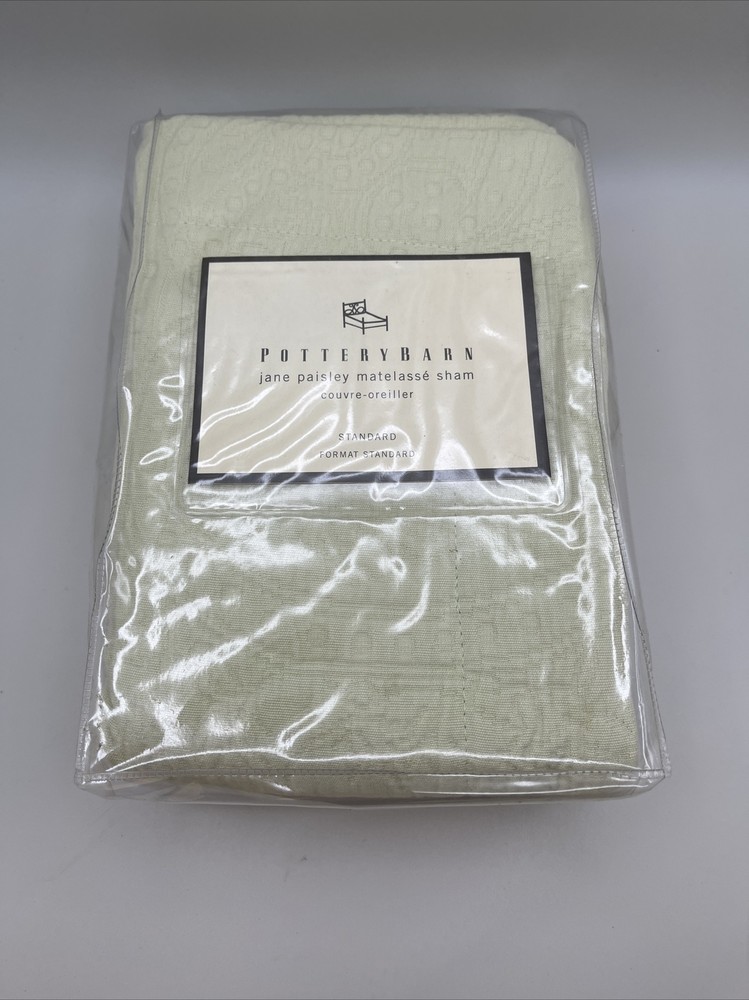 One brand new in package light green STANDARD SIZE paisley quilted sham by Pottery Barn....