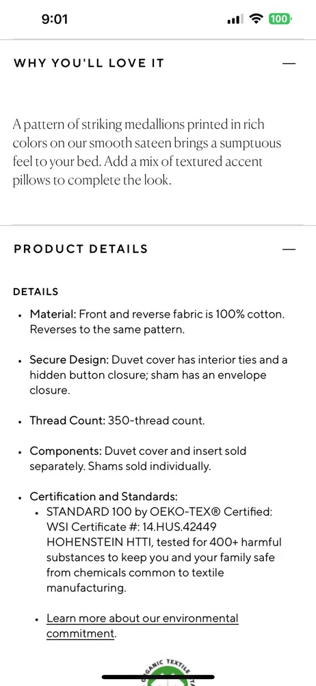 Just got this Pottery Barn duvet set, and it's stunning! The multicolor paisley design adds a luxurious yet cozy feel to my bedroom. The 100% cotton is super soft and breathable, plus it’s easy to care for—just toss it in the washer. Love that it comes with matching shams for a complete look. Barely used and in perfect condition, it feels like brand new. Such an amazing deal for high-quality bedding—totally worth it!