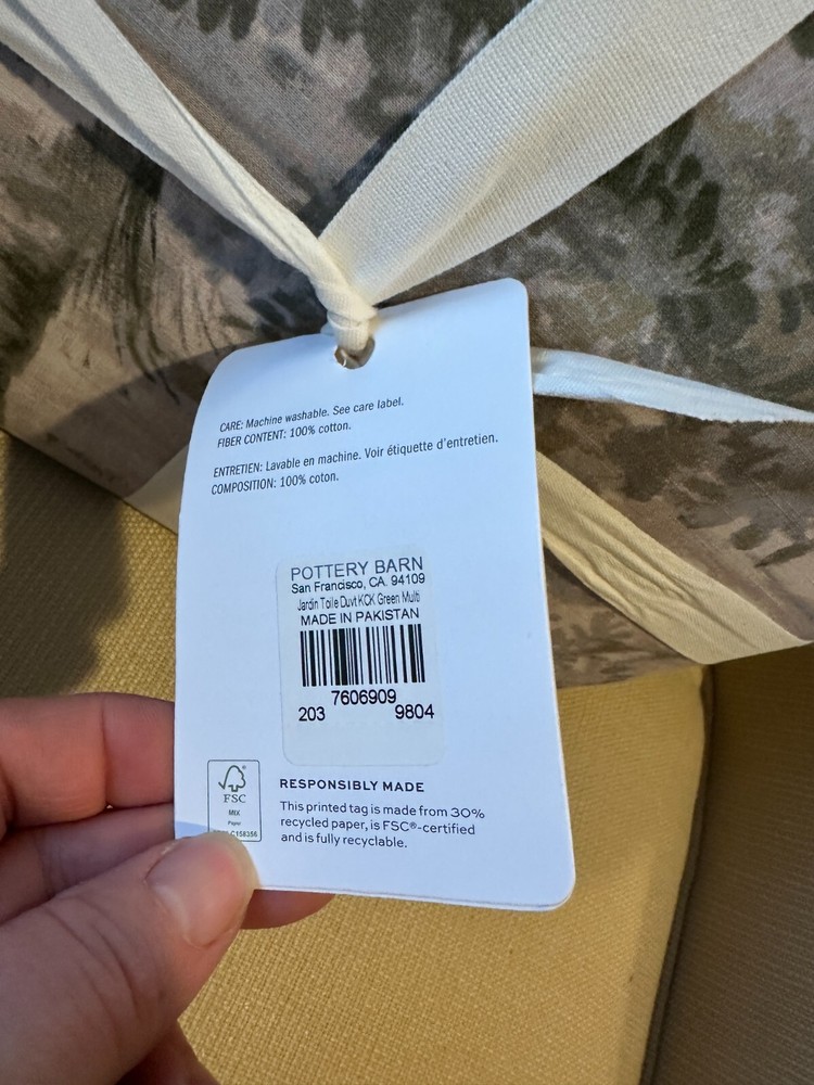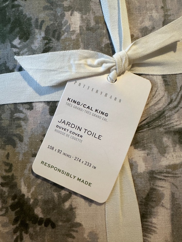 Pottery Barn Jardin Toile King Duvet cover Green New with tags...