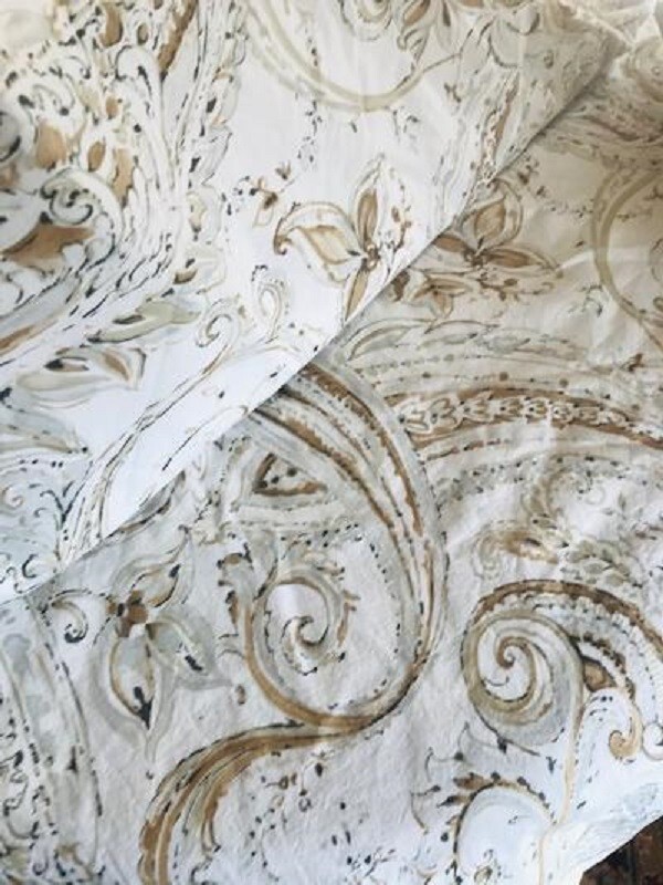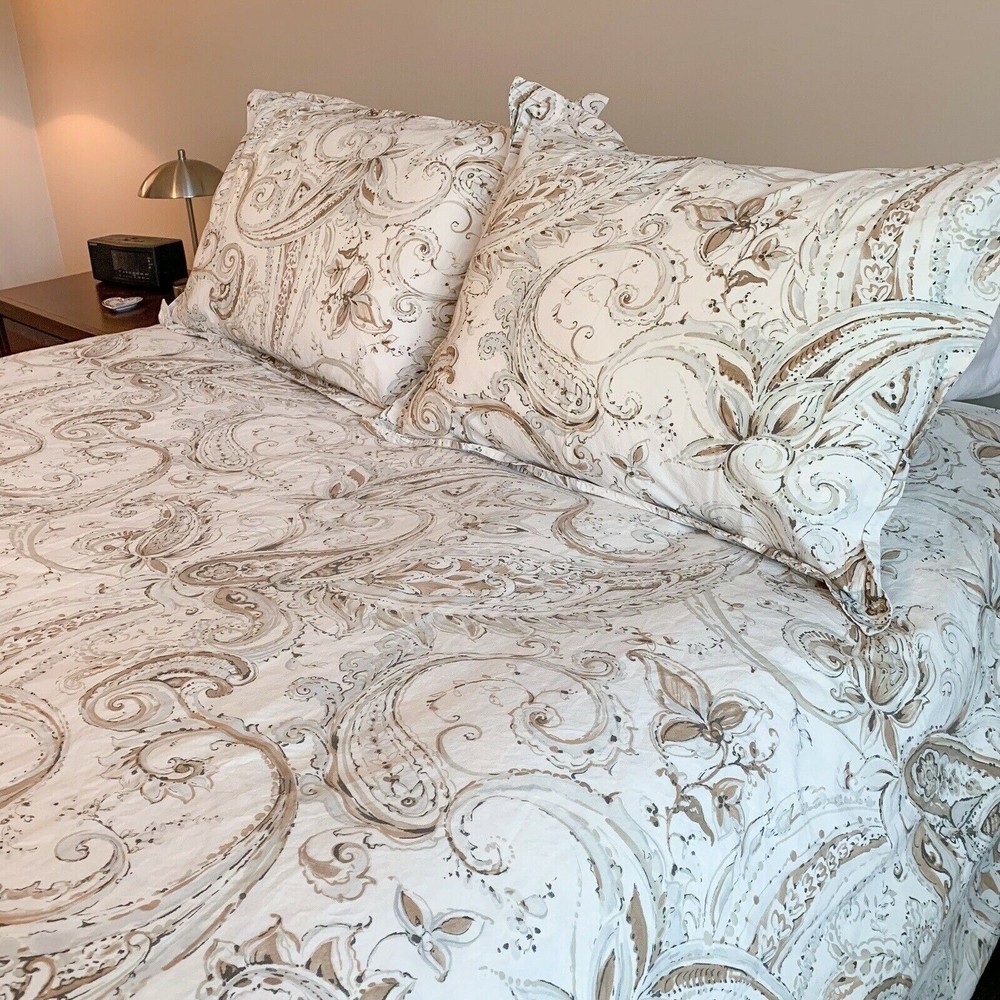 POTTERY BARN DUVET Bring natural beauty to your bedding with this duvet cover featuring scrolling designs. Made of 100% cotton. 200-thread count percale. Duvet cover and sham reverse to the same design. Duvet cover has a hidden button closure; sham has an envelope closure. Machine wash. Imported. Color is NEUTRAL, does not reverse to BLUE Auctions is for KING Duvet cover with TWO KING SHAMS. Item is USED in GREAT Condition! Shams are a bit darker than duvet. (Condition ranges I use: NEW, EXCELLENT, GREAT, GOOD, POOR) A d d i T i O N a l P h o T O s A v a i L a B Le U p O n R e Q u e S T PURCHASED DIRECTLY FROM POTTERY BARN. AUTHENTIC.