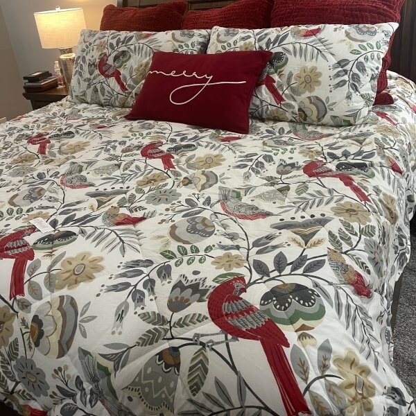 POTTERY BARN JOLLY BIRD DUVET SET For something rustic and cozy, look to folk-art inspiration when layering your holiday bed. This reversible organic cotton percale bedding displays a charming wintry scene of flora and fauna. Machine wash. Imported. Auction is for QUEEN DUVET and TWO STANDARD SHAMS Item is BRAND NEW! A d d i T i O N a l P h o T O s A v a i L a B Le U p O n R e Q u e S T PURCHASED DIRECTLY FROM POTTERY BARN. AUTHENTIC.