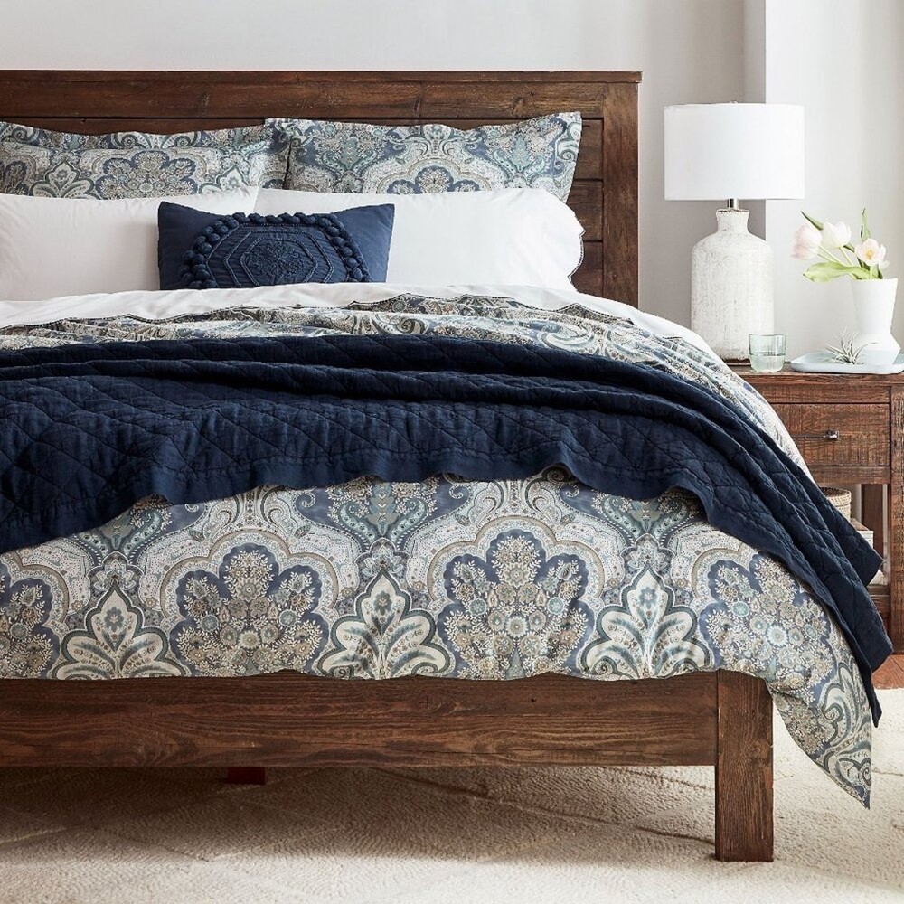 <![CDATA[<div>Pottery Barn Jordana Paisley Percale Duvet Cover King / California King: 92" w x 108" l NEW (inspected and repackaged by Pottery Barn) Construction: Made of 100% cotton percale. Duvet cover and sham reverses to self. Duvet features a hidden button closure with inner ties that keep the insert in place; sham features an envelope closure. Duvet cover and insert sold separately. Shams sold individually. OEKO-TEX STANDARD 100: tested against 1000+ harmful substances. Care Machine wash in warm water; gentle cycle with like colors. Only non-chlorine bleach when needed. Tumble dry on low heat; remove promptly. Warm iron as needed. Comes from a clean and smoke free home!