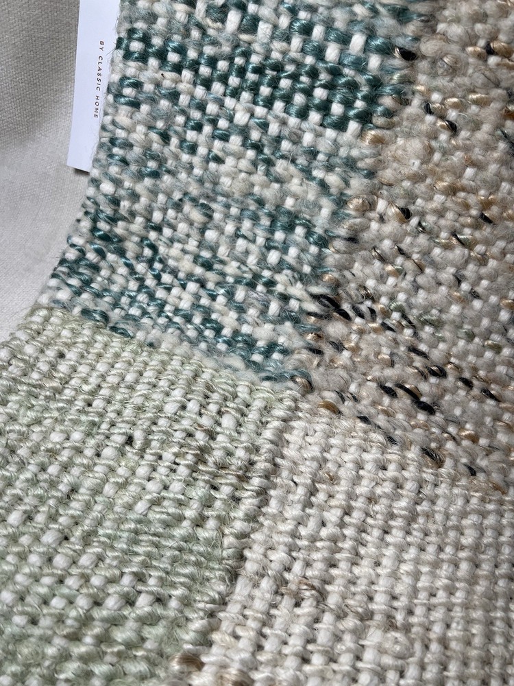 Expertly crafted of 60% Cotton and 40% Jute. Reverses to a solid Cotton/Belgian flax linen blend. Yarn-dyed fiber has incredibly rich color that holds its vibrancy over time.