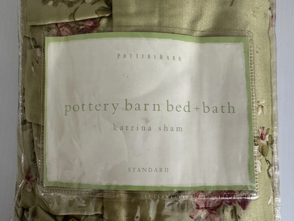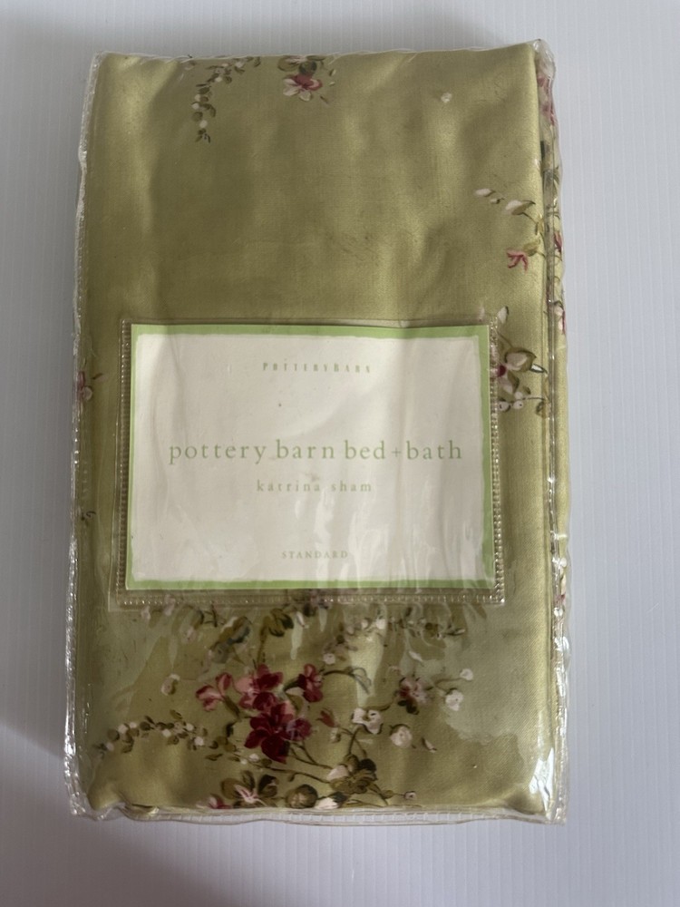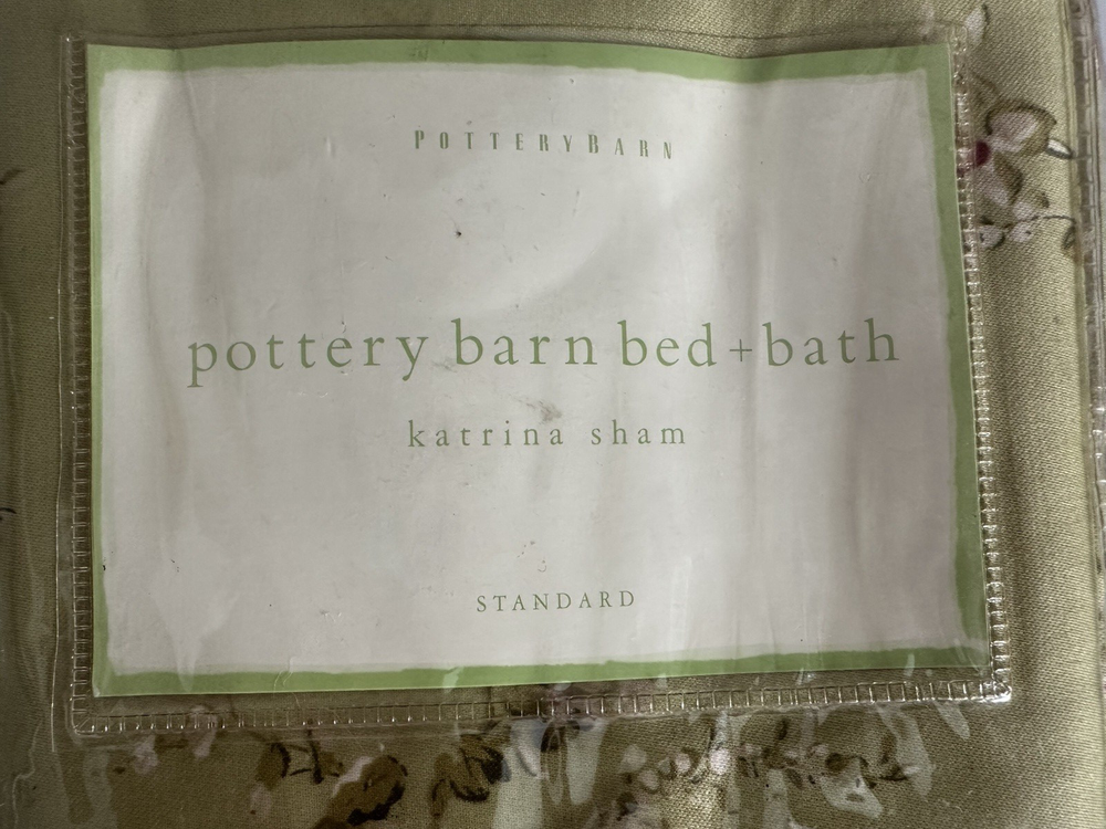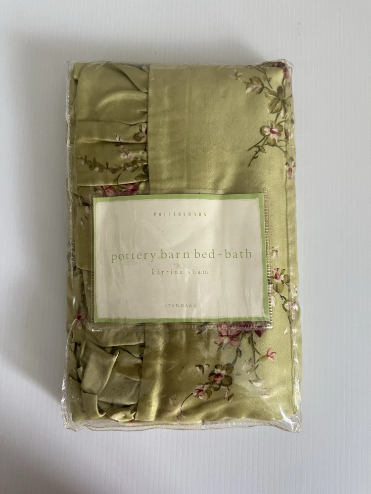 Pottery Barn Bed & Bath ~ KATRINA standard pillow sham. Gorgeous satin like material in a beautiful shade of green with scattered floral pattern. Ruffled edge. NEW (old stock) discontinued pattern is in original packaging and in excellent condition. Packaging may have some markings or sticker residue. I have two available, selling individually. 82% polyester / 18% cotton. Ultra soft, satin like feel to fabric. Machine wash, tumble try. Any questions, please ask prior to purchase. Please check out my other treasures! New and hard to find items listed weekly. I usually offer 4 shipping options, so please compare and select the best option for you. I am always happy to combine items to save you money on shipping costs. Please request PRIOR to making payment. Thank you for browsing my store, I greatly appreciate it!