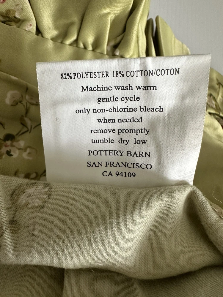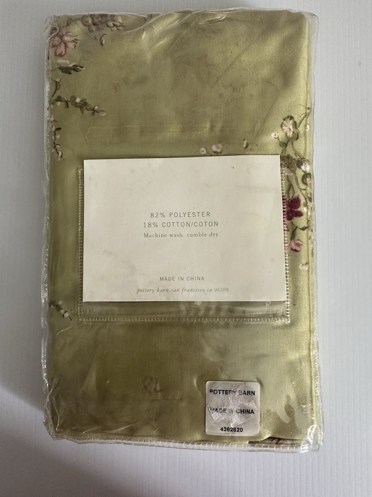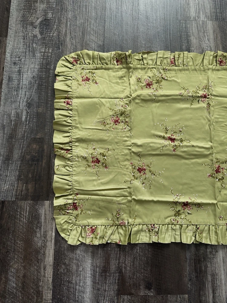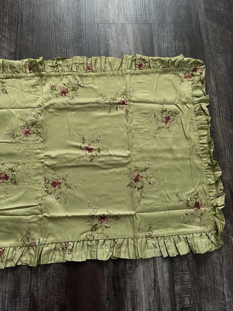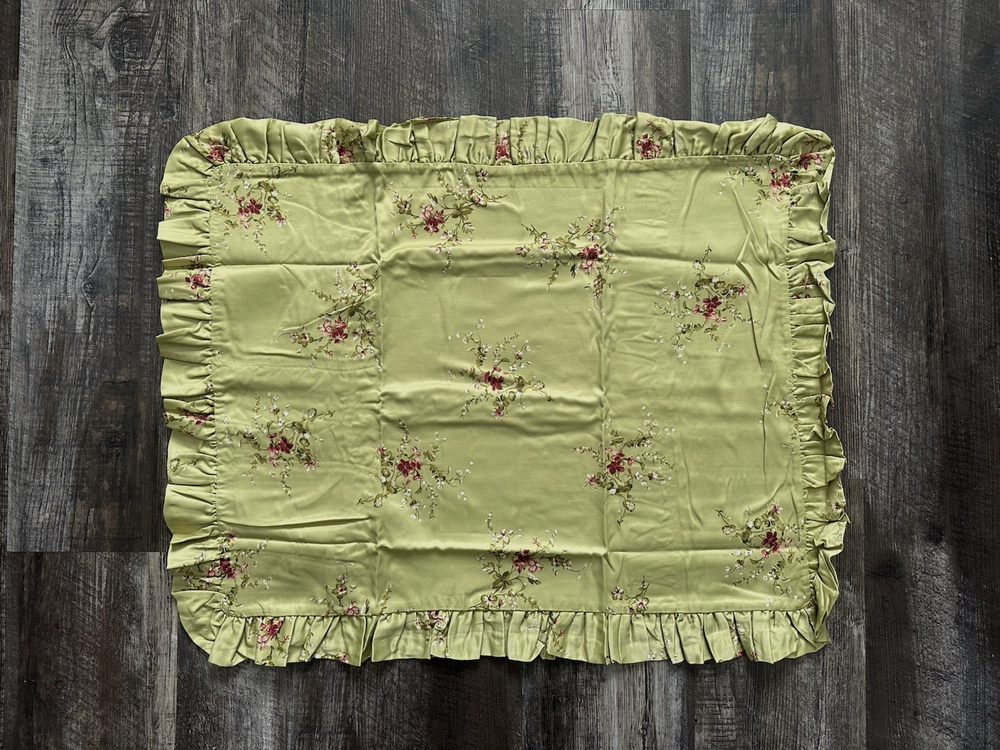 Pottery Barn Bed & Bath ~ KATRINA standard pillow sham. Gorgeous satin like material in a beautiful shade of green with scattered floral pattern. Ruffled edge. NEW (old stock) discontinued pattern is in original packaging and in excellent condition. Packaging may have some markings or sticker residue. I have two available, selling individually. 82% polyester / 18% cotton. Ultra soft, satin like feel to fabric. Machine wash, tumble try. Any questions, please ask prior to purchase. Please check out my other treasures! New and hard to find items listed weekly. I usually offer 4 shipping options, so please compare and select the best option for you. I am always happy to combine items to save you money on shipping costs. Please request PRIOR to making payment. Thank you for browsing my store, I greatly appreciate it!