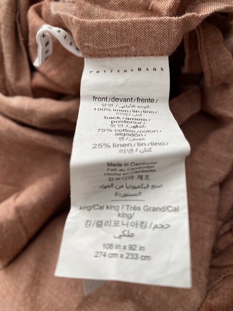 Double flanges with raw edges bring a casual sensibility to the design, while the natural, breathable fibers make this bedding perfect for year-round layering. Material: Linen woven from 100% Belgian flax; reverse is 75% cotton and 25% linen blend. Secure Design: Duvet features a hidden button closure with inner ties that keep the insert in place; sham features an envelope closure. Machine wash in cold water separately on gentle cycle. Use only non-chlorine bleach, if needed. Line or tumble dry on a low temperature.