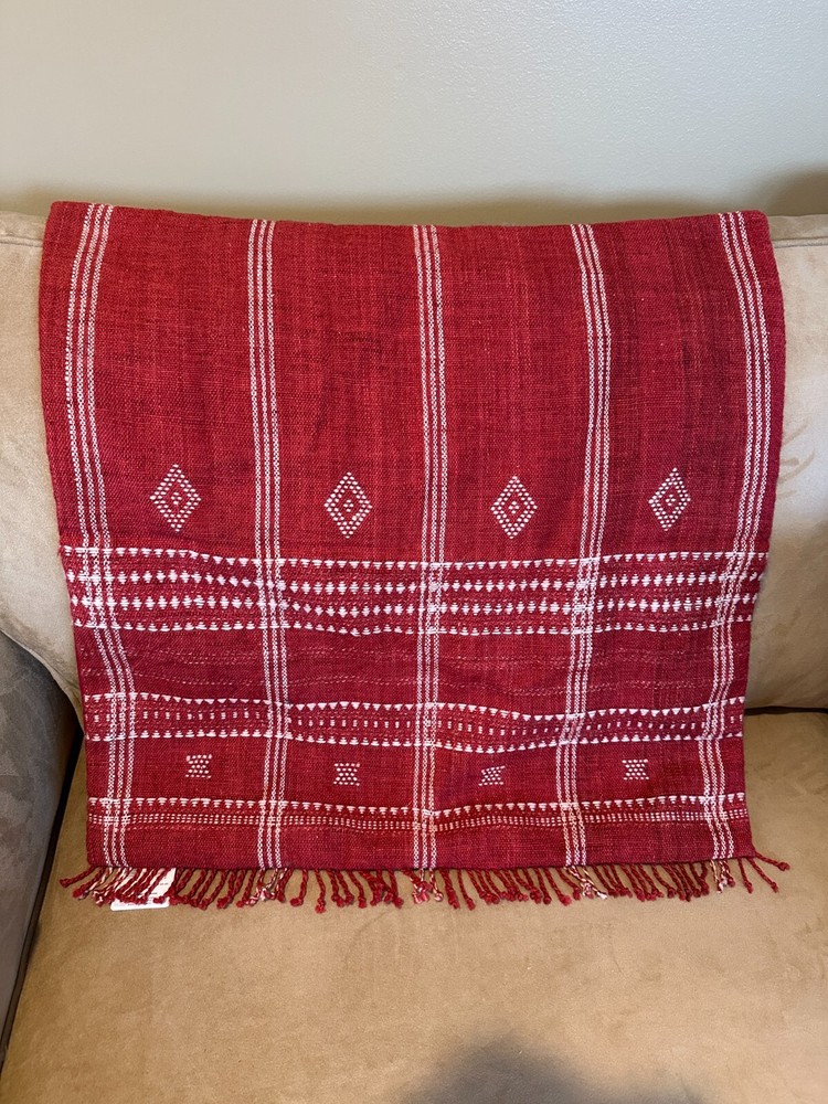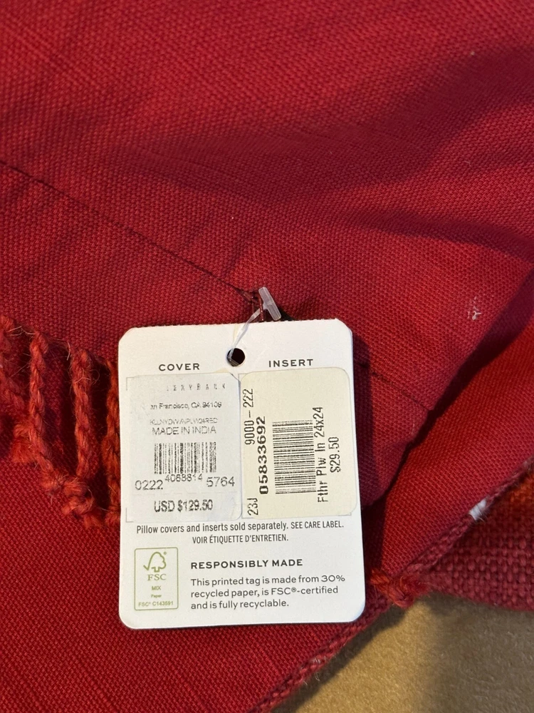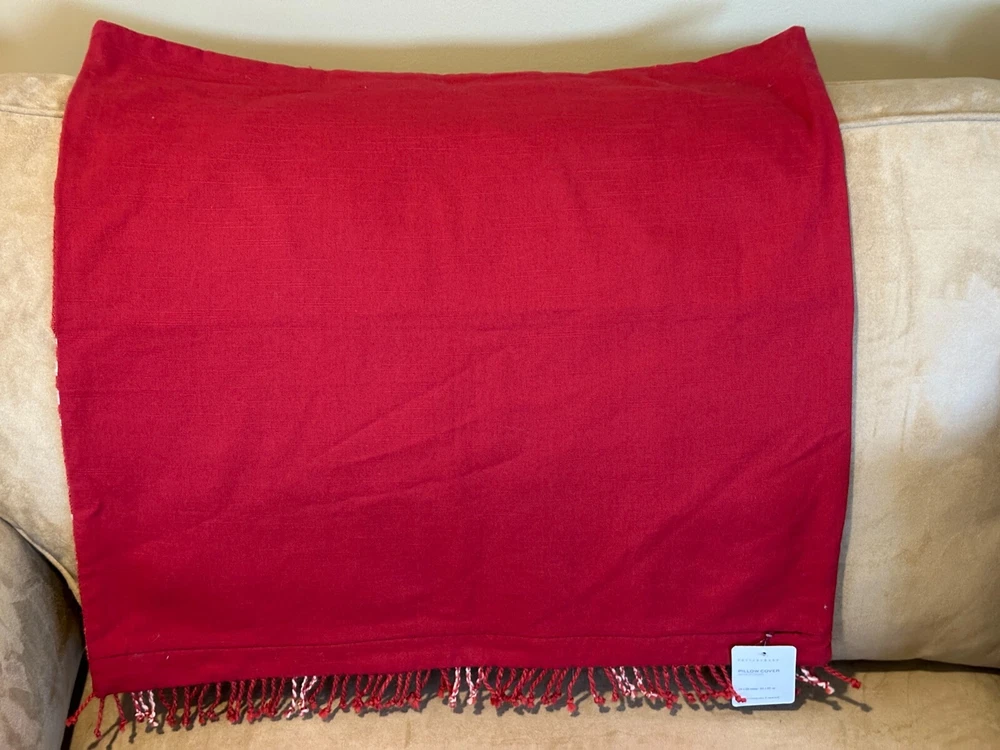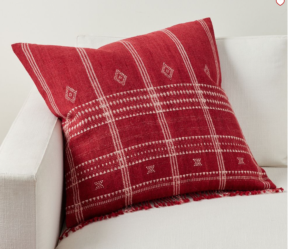 Pottery Barn KELLAN Yarn Dyed Woven Pillow Cover 24" RED Holiday SOLD OUT NEW...