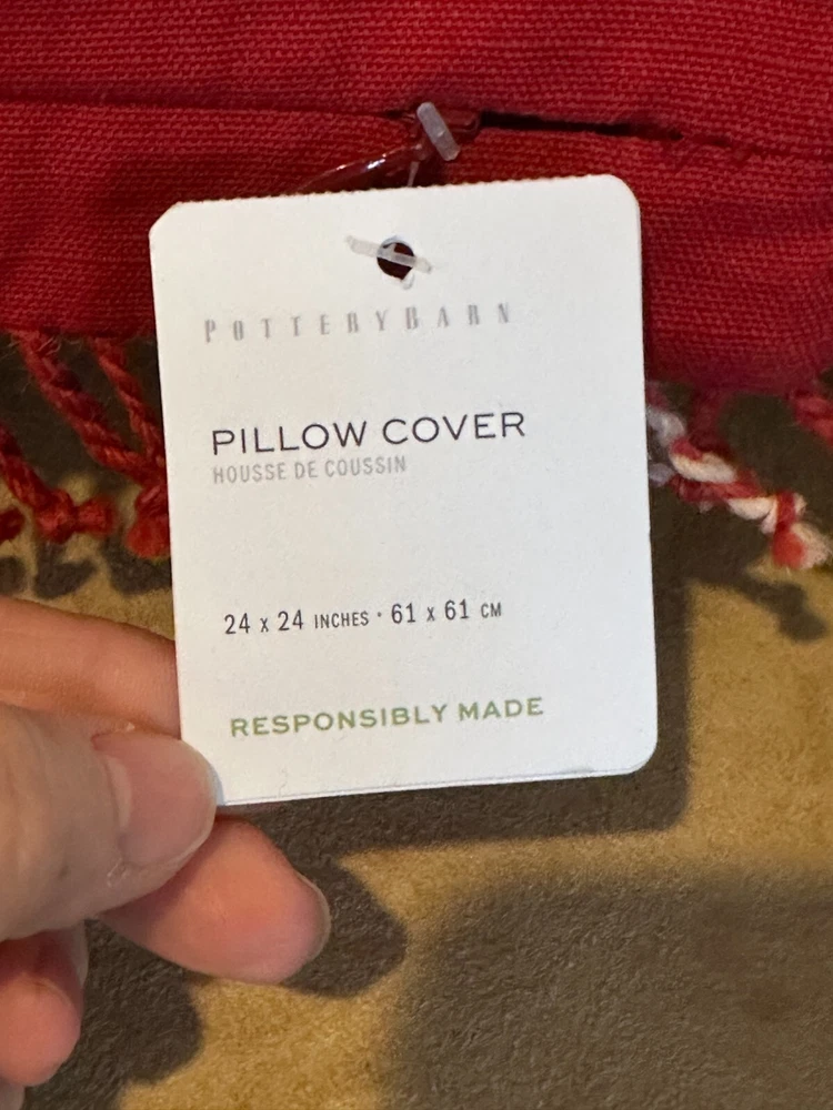 Pottery Barn KELLAN Yarn Dyed Woven Pillow Cover 24" RED Holiday SOLD OUT NEW