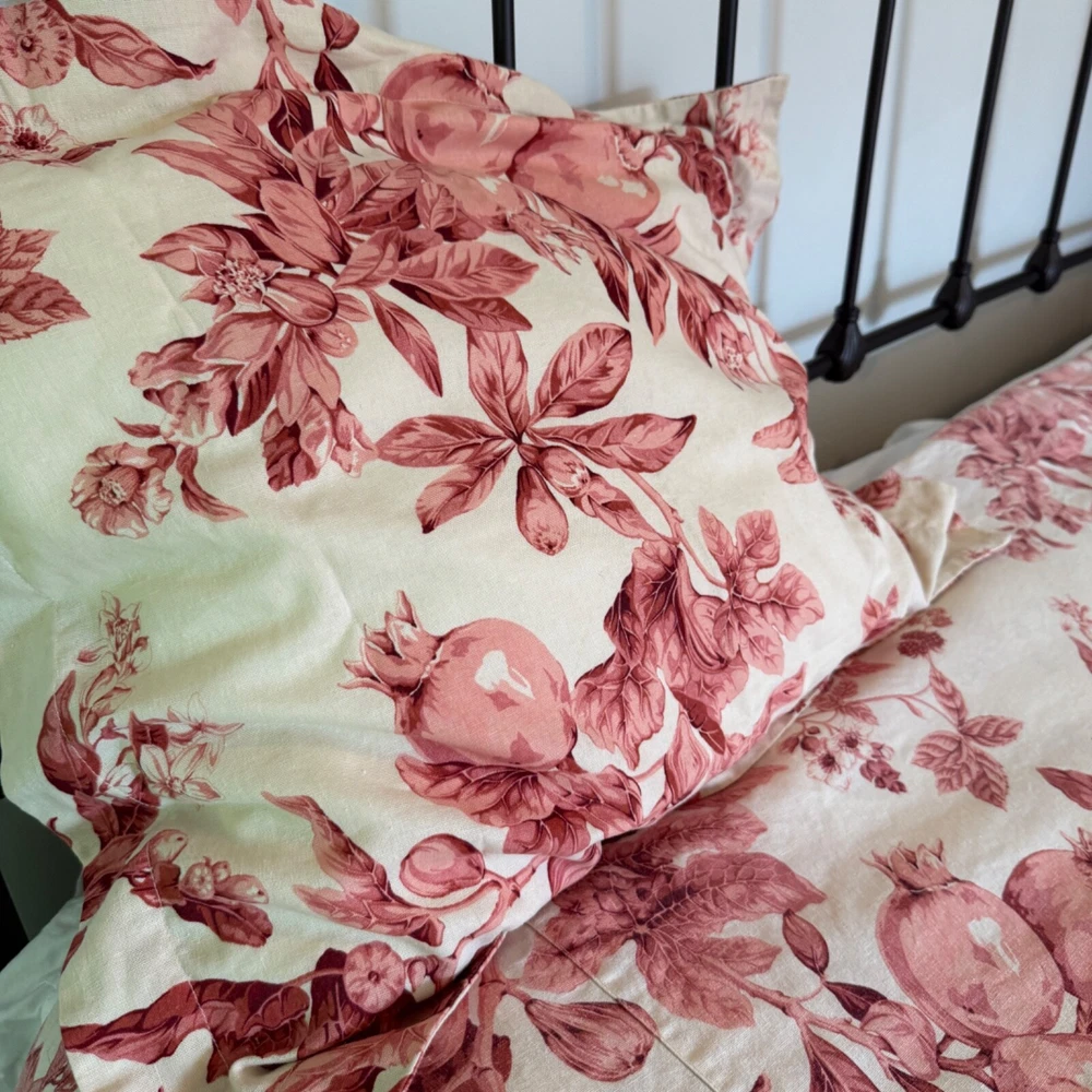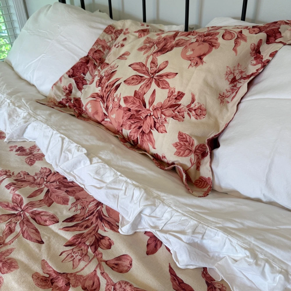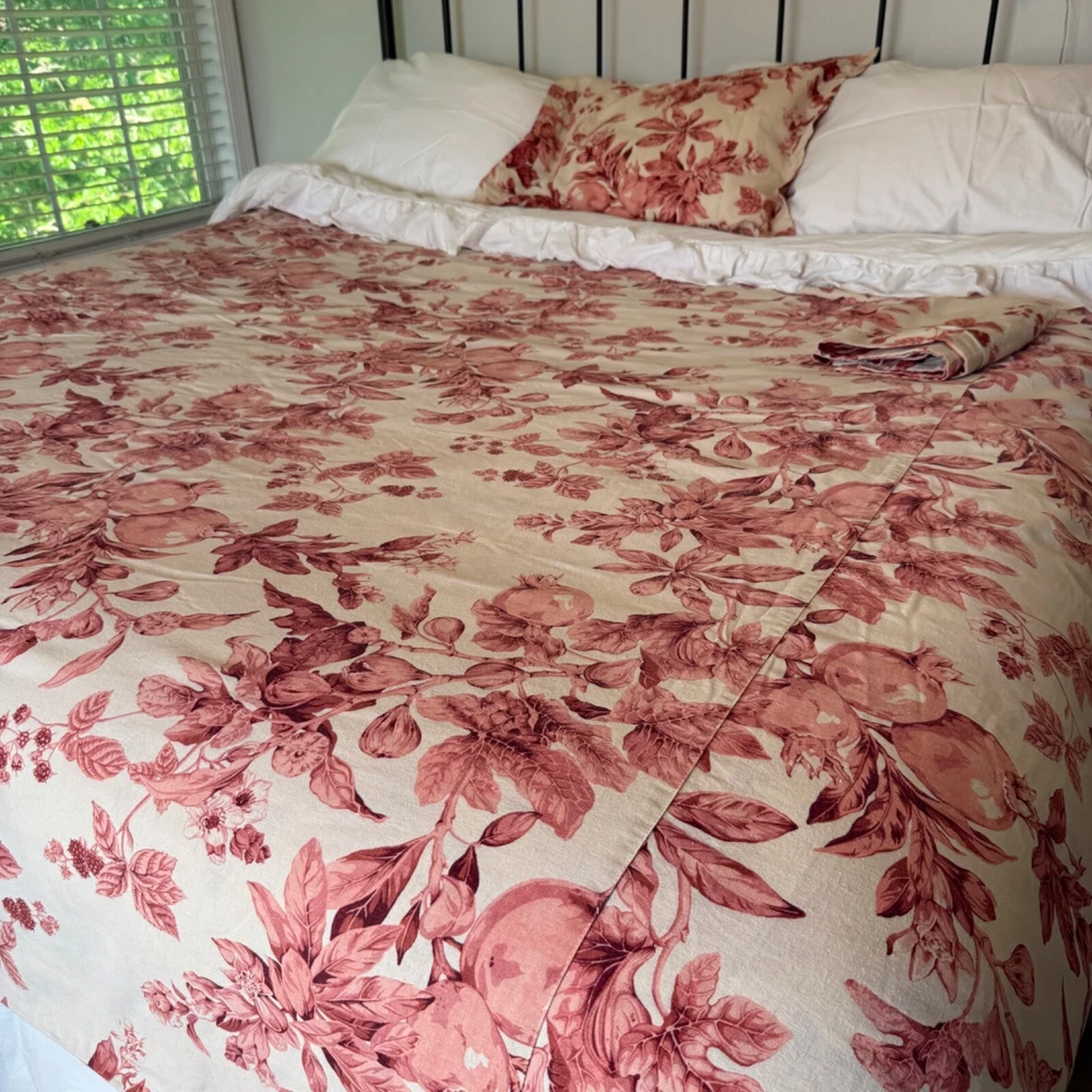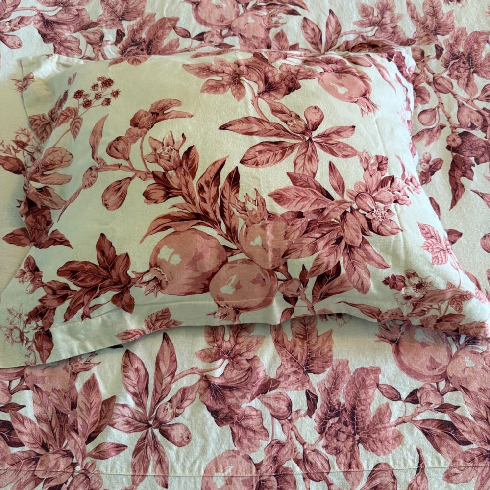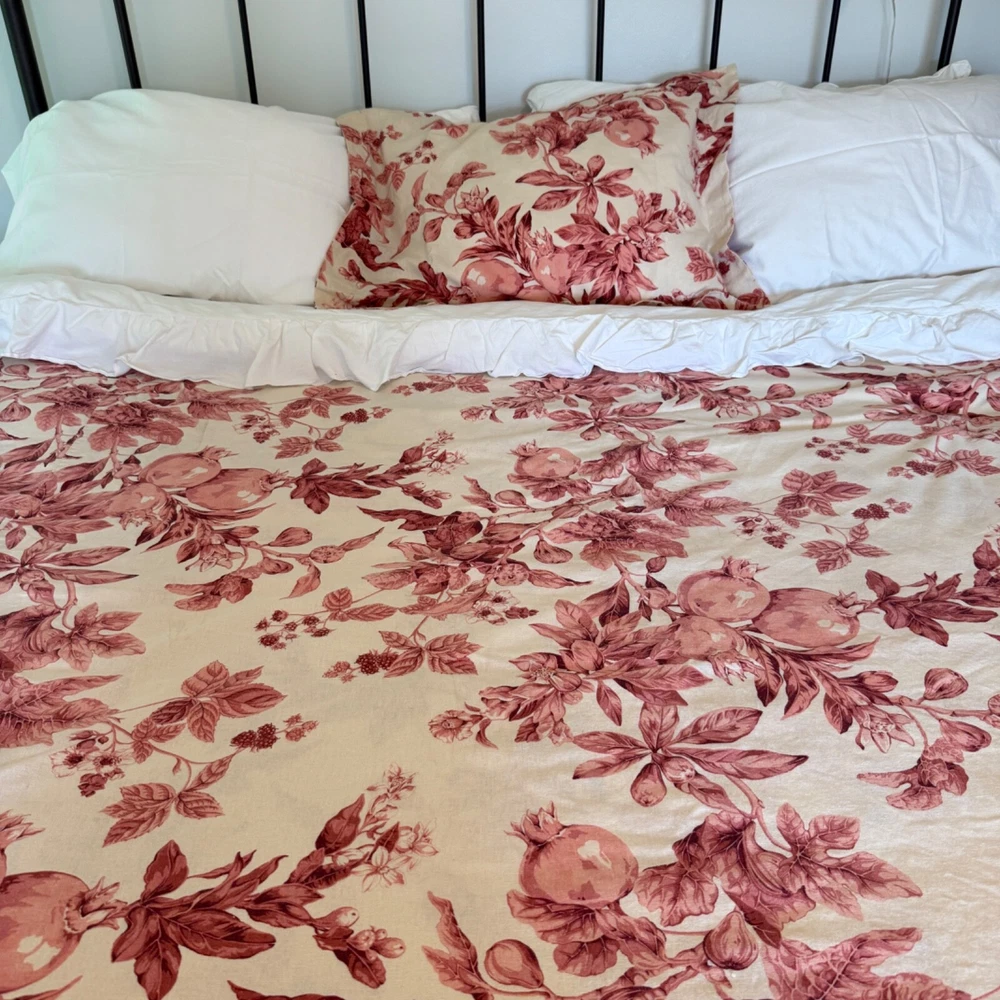 Beautiful Pottery Barn Lisette King size Linen / Cotton Duvet cover with 1 sham (plus another sham thrown in free due to a damaged corner, but could be made into a throw pillow very easily, as shown in pics.) I have shown both sides of the duvet, the first pictures are side 1, and the pictures with the bed made with white linens are side 2. The other white linens and pillows in the photos are not included, just used to show how pretty this pattern is used with white linens. you will get one King size duvet cover, both sides are the same. 1 Standard pillow sham, and another standard pillow sham thrown in free of charge, due to the damage on one corner. It can be used to make a throw pillow, though. No major damage, just slight fading from washing, and minor pilling in a few small spots, not all over. The Sham looks like it is a bit brighter, with no fading, as it hasn't been washed as frequently as the duvet. All are clean and ready to go. Please ask if you need more pics, or any questions you may have! Thank you! Please see all pictures.
