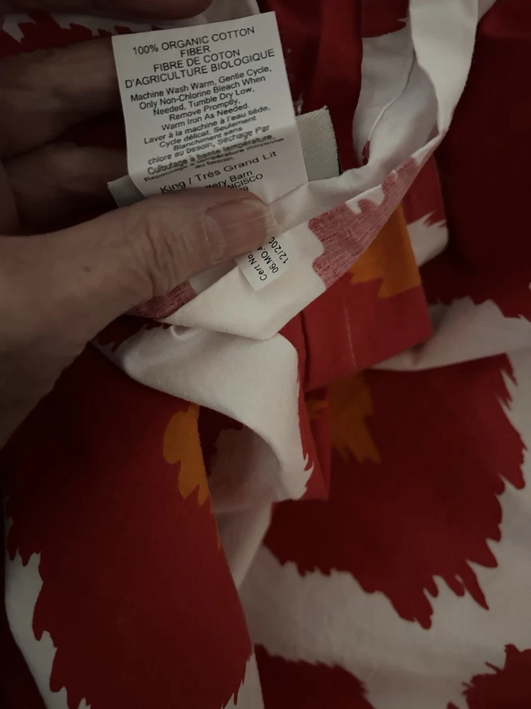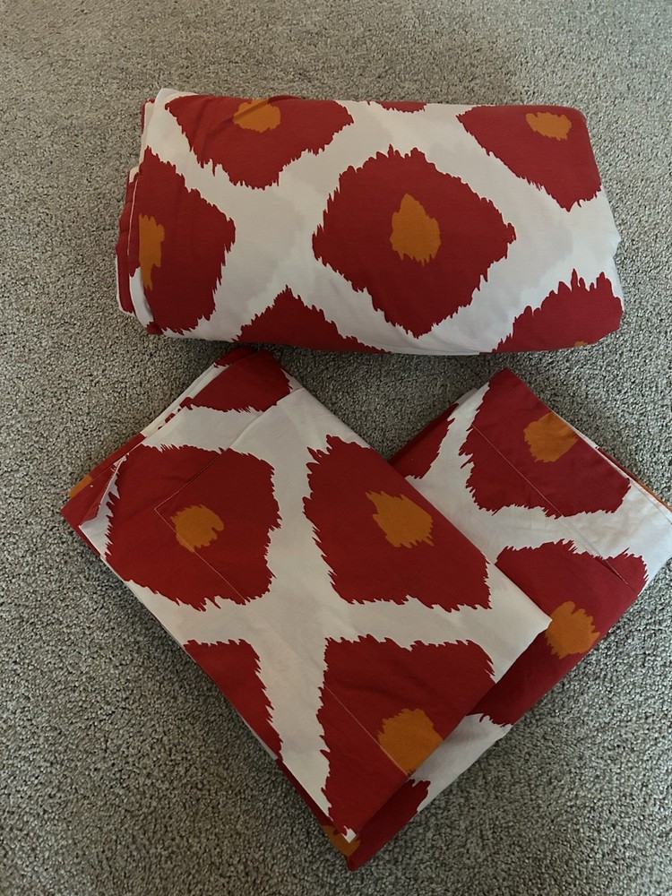 Pottery Barn iKAT red orange and white king duvet cover and 2 standard shams in very good condition, 100% organic cotton. Please take a look at my other Pottery Barn linens. I’ll happily combine shipp...