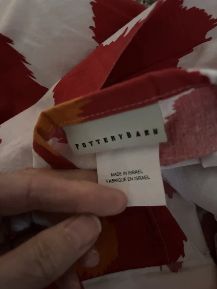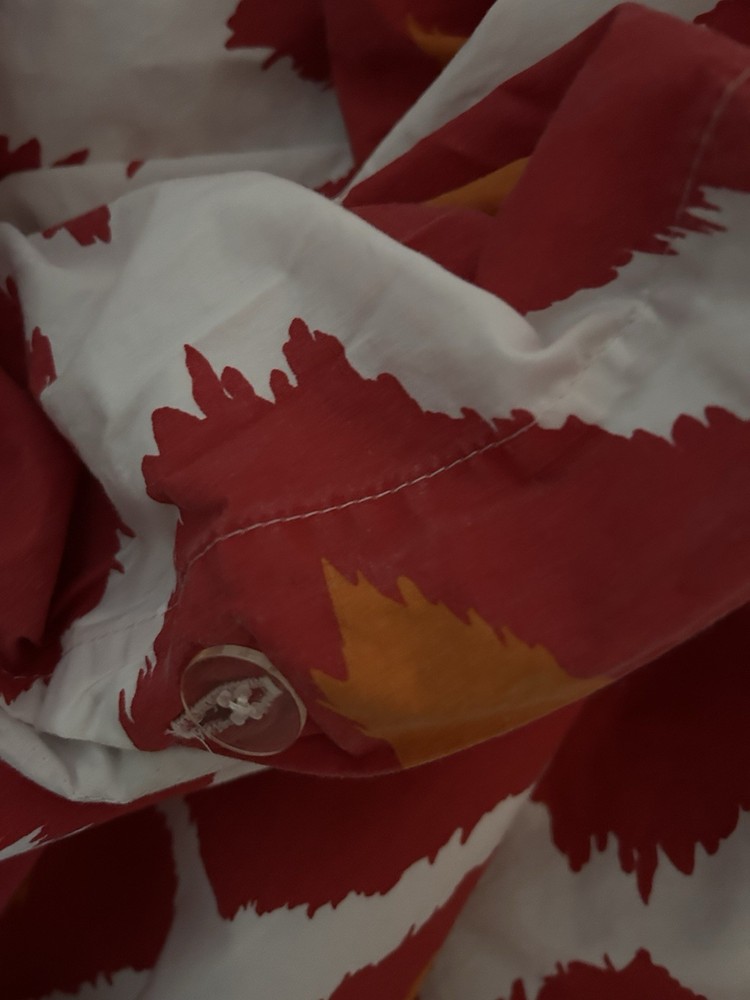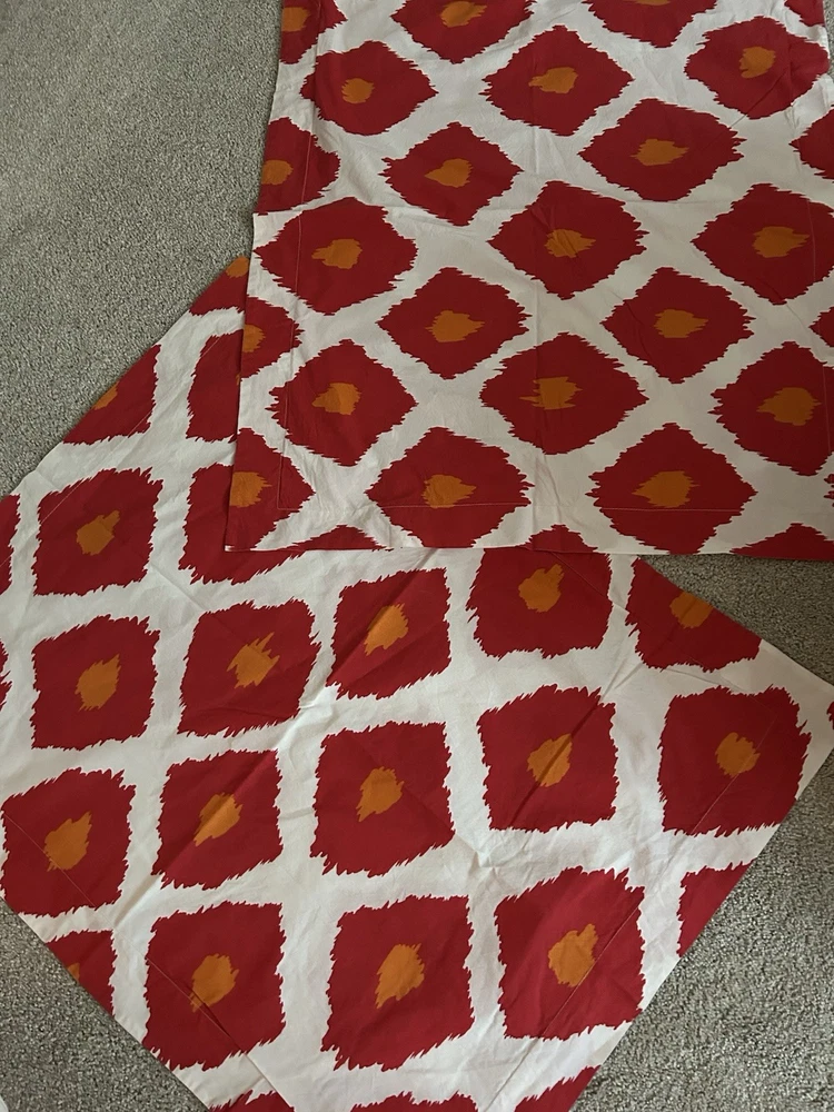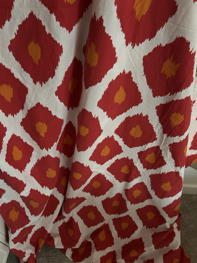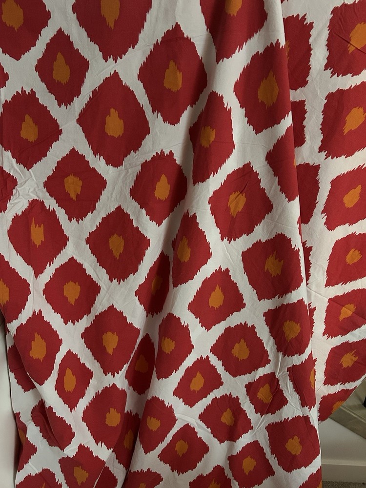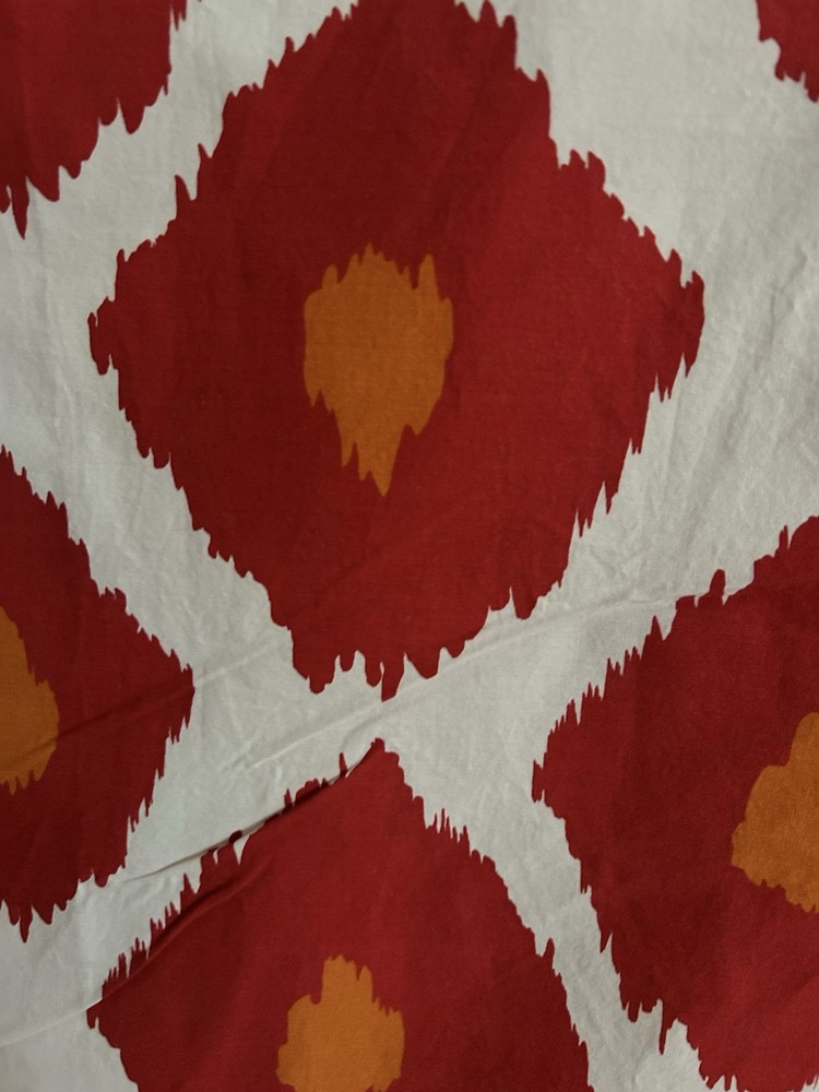 Pottery Barn iKAT red orange and white king duvet cover and 2 standard shams in very good condition, 100% organic cotton. Please take a look at my other Pottery Barn linens. I’ll happily combine shipping costs. Thanks for looking!