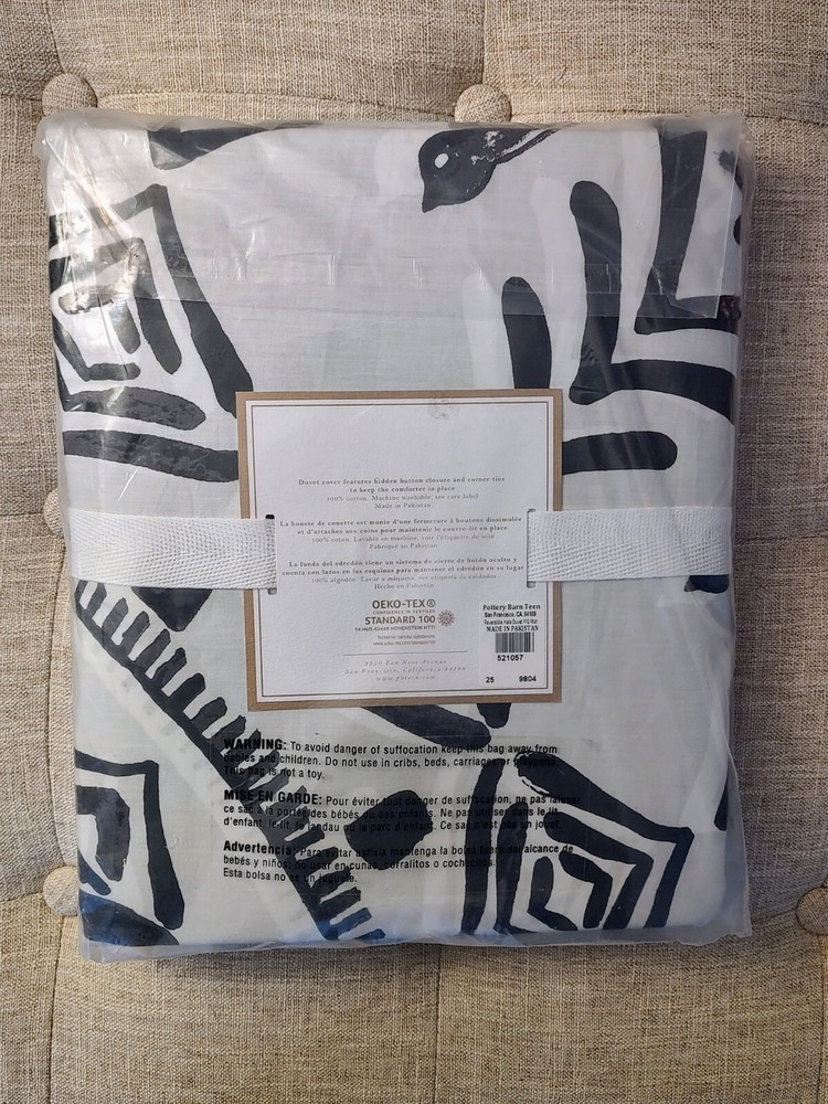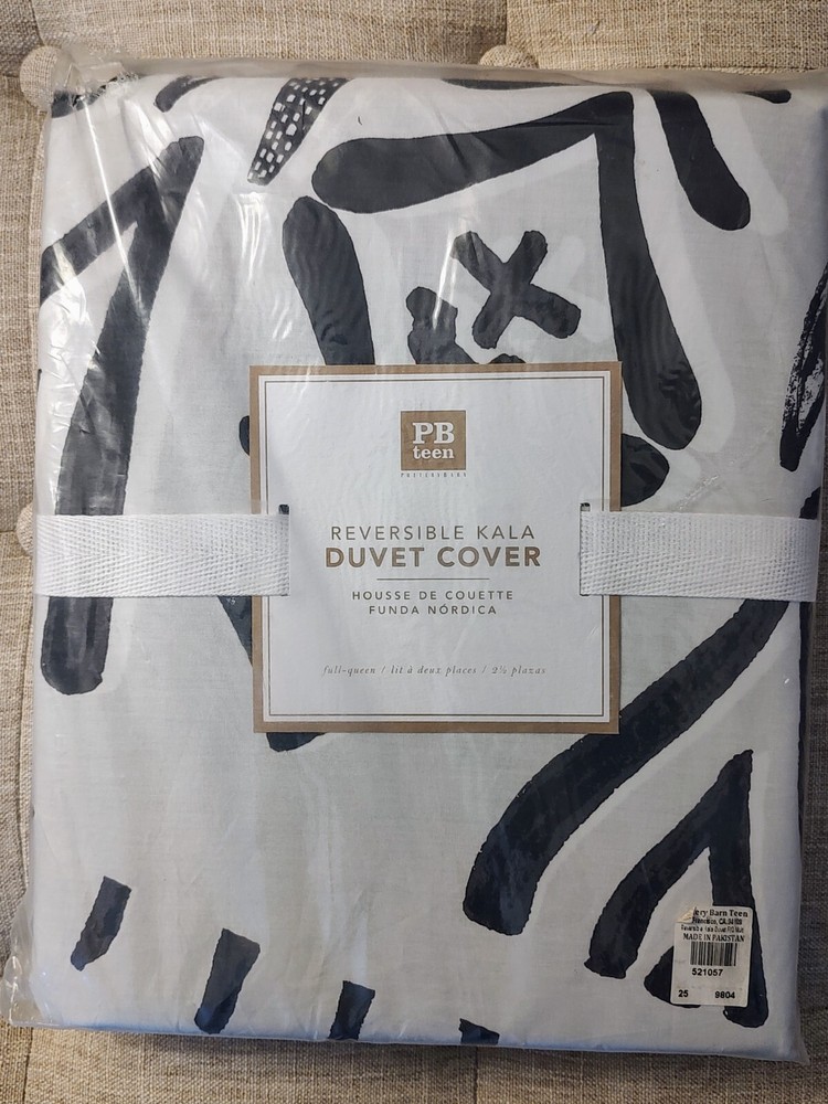 New in package, Pottery Barn Teen Reversible Kala cotton duvet cover to fit full/queen, other side is the black background with white. Add a touch of elegance and style to your bedroom with this beautiful Pottery Barn Kala duvet cover. Made from 100% cotton, this reversible duvet cover features an abstract multicolor pattern that will complement any décor. Perfect for a queen-sized bed, this duvet cover is sure to impress. The Pottery Barn Kala duvet cover is ideal for anyone looking to add a touch of luxury to their bedroom. With its reversible design and high-quality materials, this duvet cover is sure to last for years to come. So why wait? Add this stunning duvet cover to your collection today!