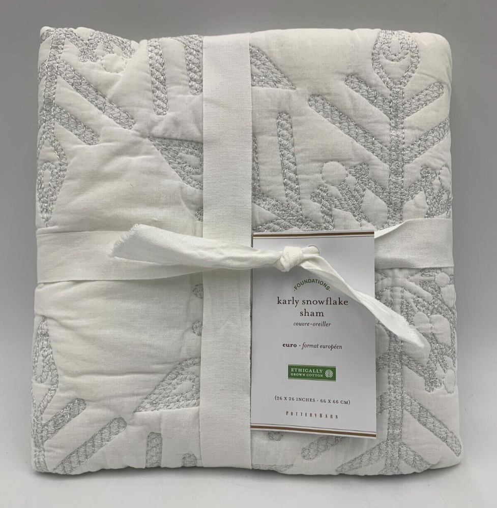 Pottery Barn Karly Snowflake Sham Item is brand new Auction includes: 1 sham Size: Euro (26 X 26 in)