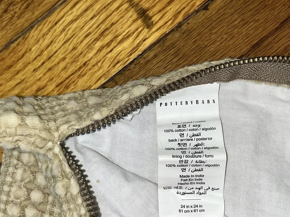 Pottery Barn Khaki Matelasse Cotton Euro Sham 24"x24" Pillow not included Made in India No stains or snags. Close up photos depict color more accurately....