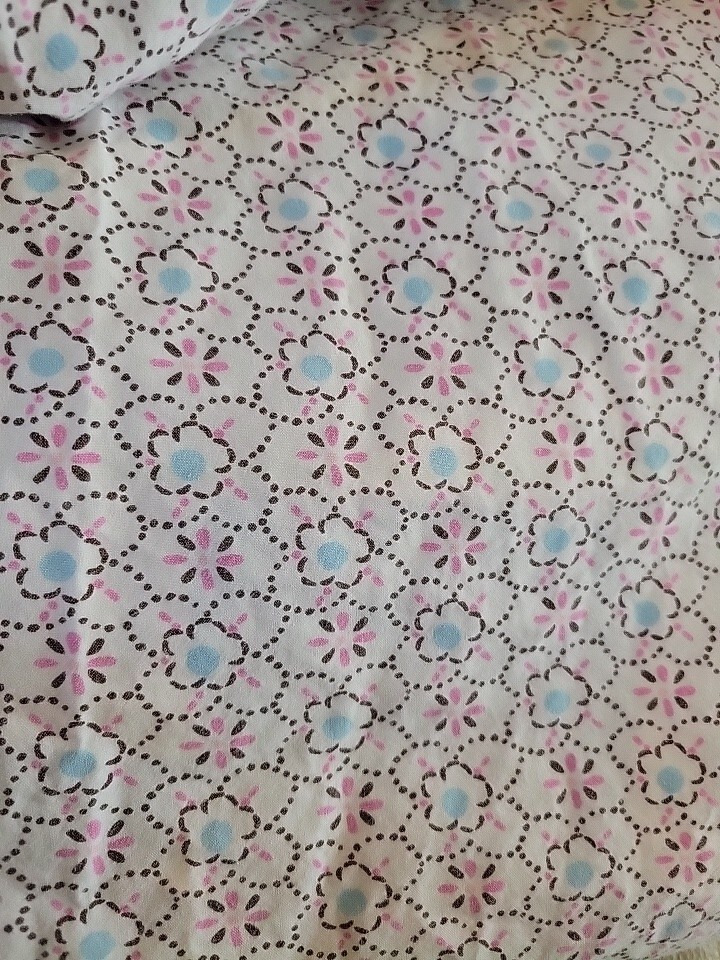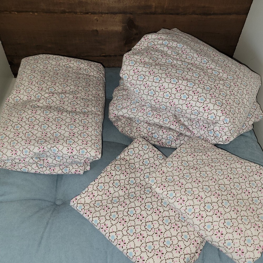 Pre-owned Full/Double Brooklyn pattern Pink and blue flowers No Rip, No Stains, elastic is in good condition. Comes with Full Fitted, Full Flat, Two standard pillowcases. Please see all pictures and ask all questions prior to placing your order.