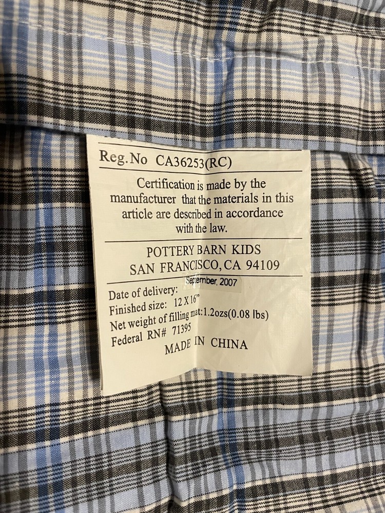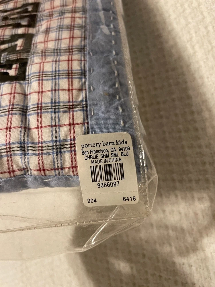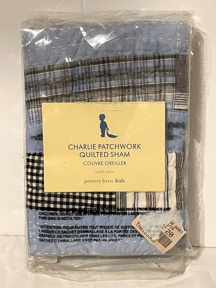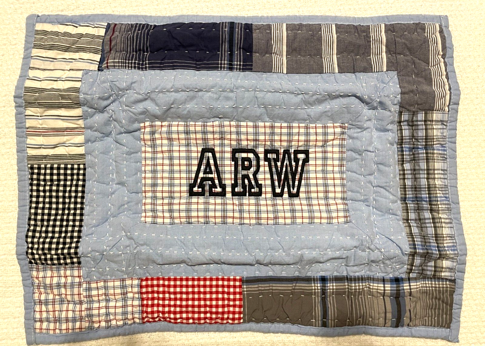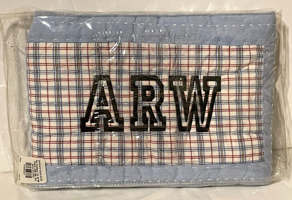 Pottery Barn Kids Charlie Patchwork Quilted Sham EMBROIDERED w/ initials "ARW" Never used NEW This item is EMBROIDERED with INITIALS - ARW. Never used. Has original packaging. Size: 12" x 16"