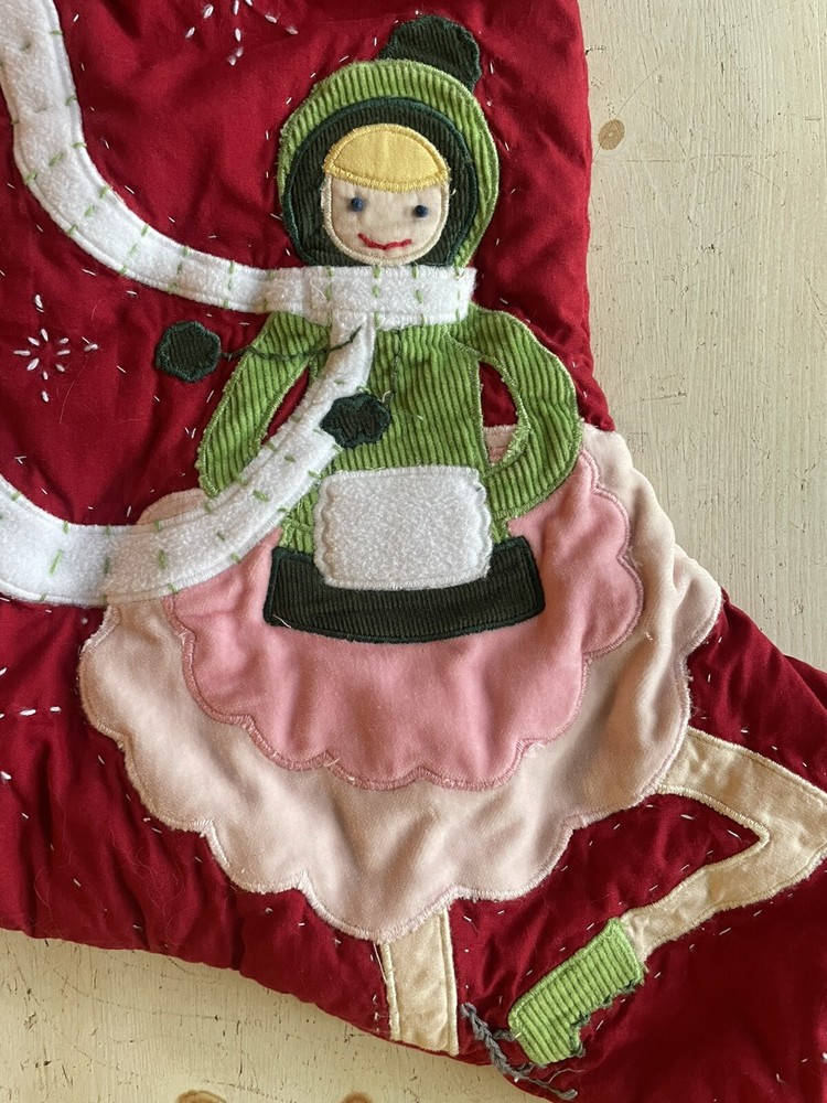 This adorable Pottery Barn Kids stocking is even cuter in person! The quilted design and embroidery give it a high-end look, and the mix of textures with velvet and corduroy details makes it extra special. It arrived freshly cleaned, in perfect condition, and the sizing is just right for stuffing with goodies. The red and white color combo is classic but the fun skating theme adds a playful touch. Avery will love hanging this on the mantle—super soft, sturdy, and packed with holiday charm. Shipping was fast too!