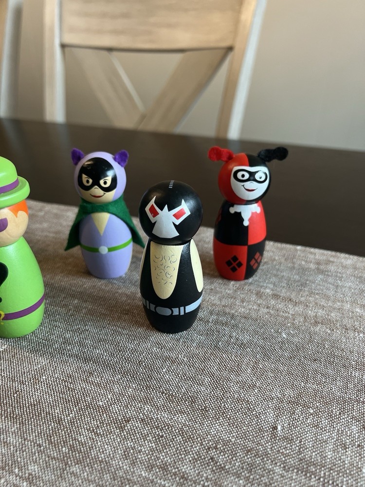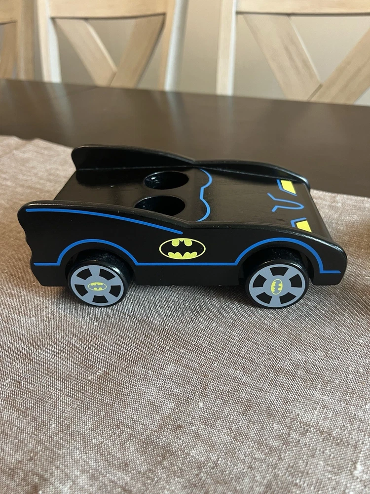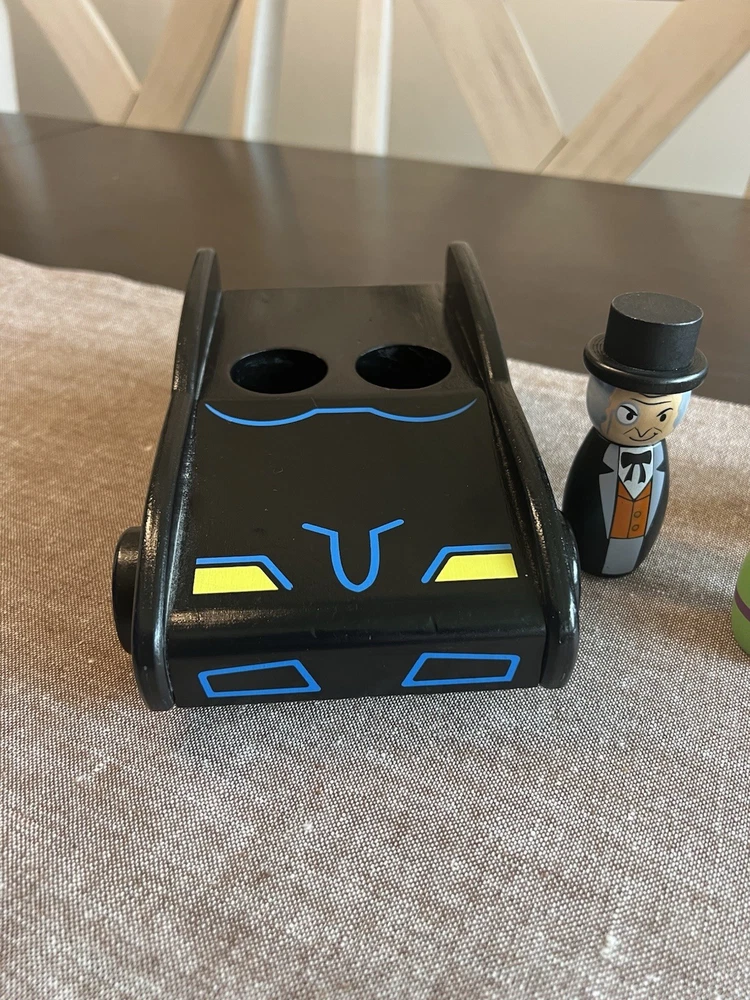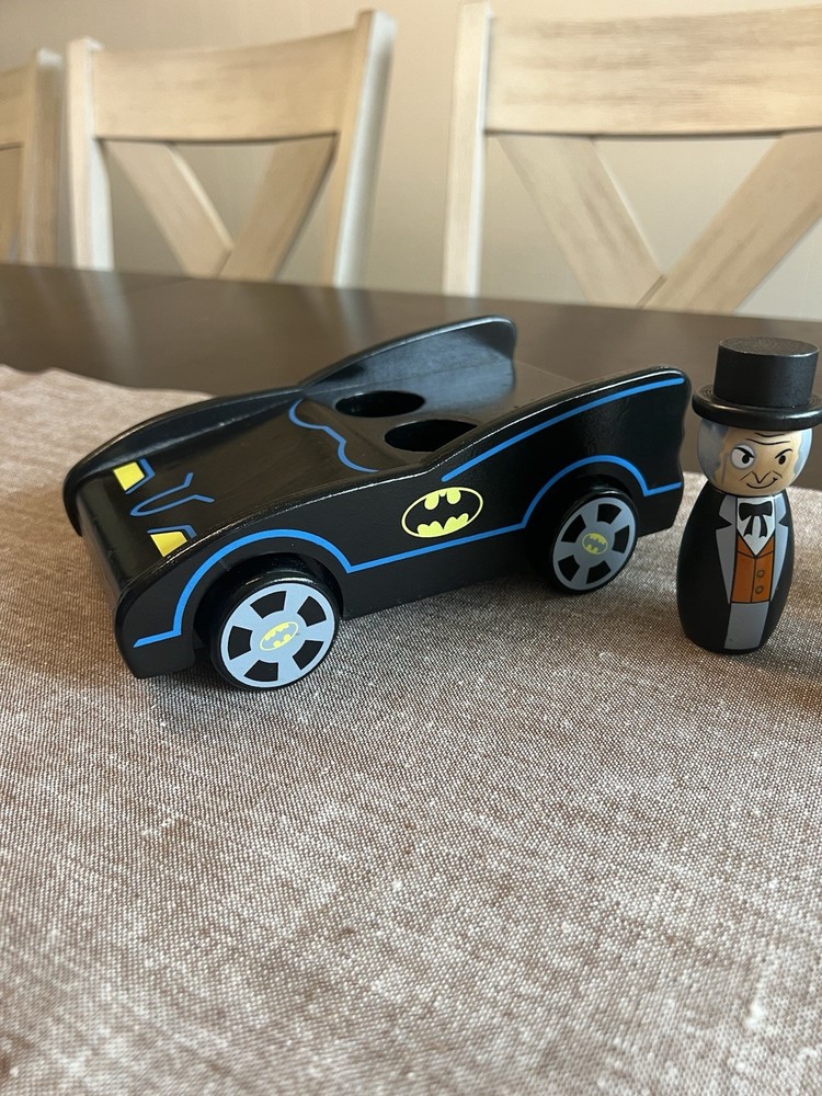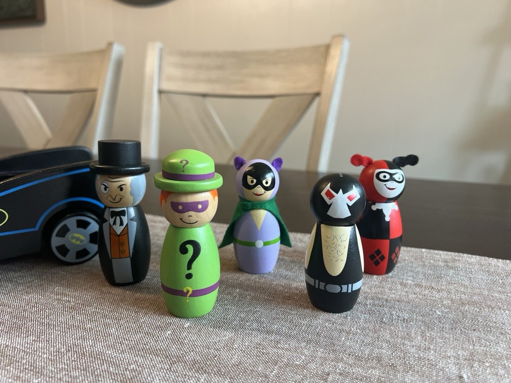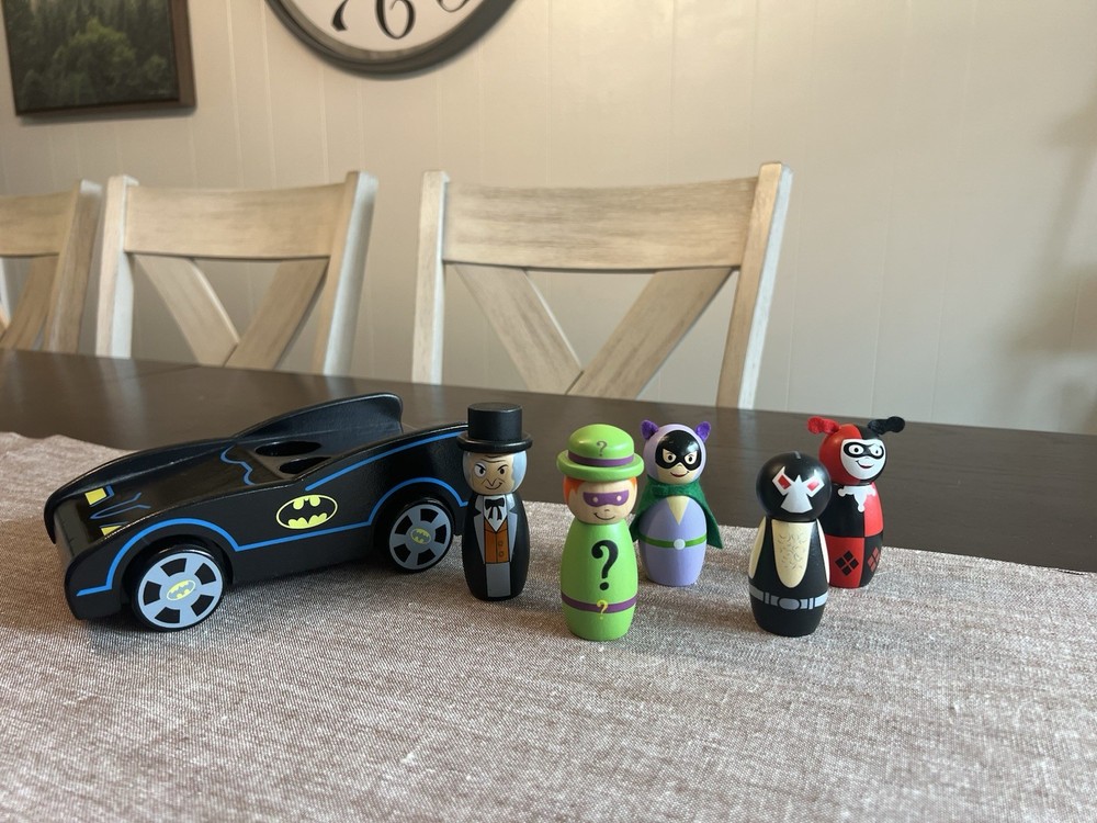 Pottery Barn Kids DC Comics Wooden Batmobile and Figures The Penguin, The Riddler, Catwoman, Bane, and Harley Quinn...