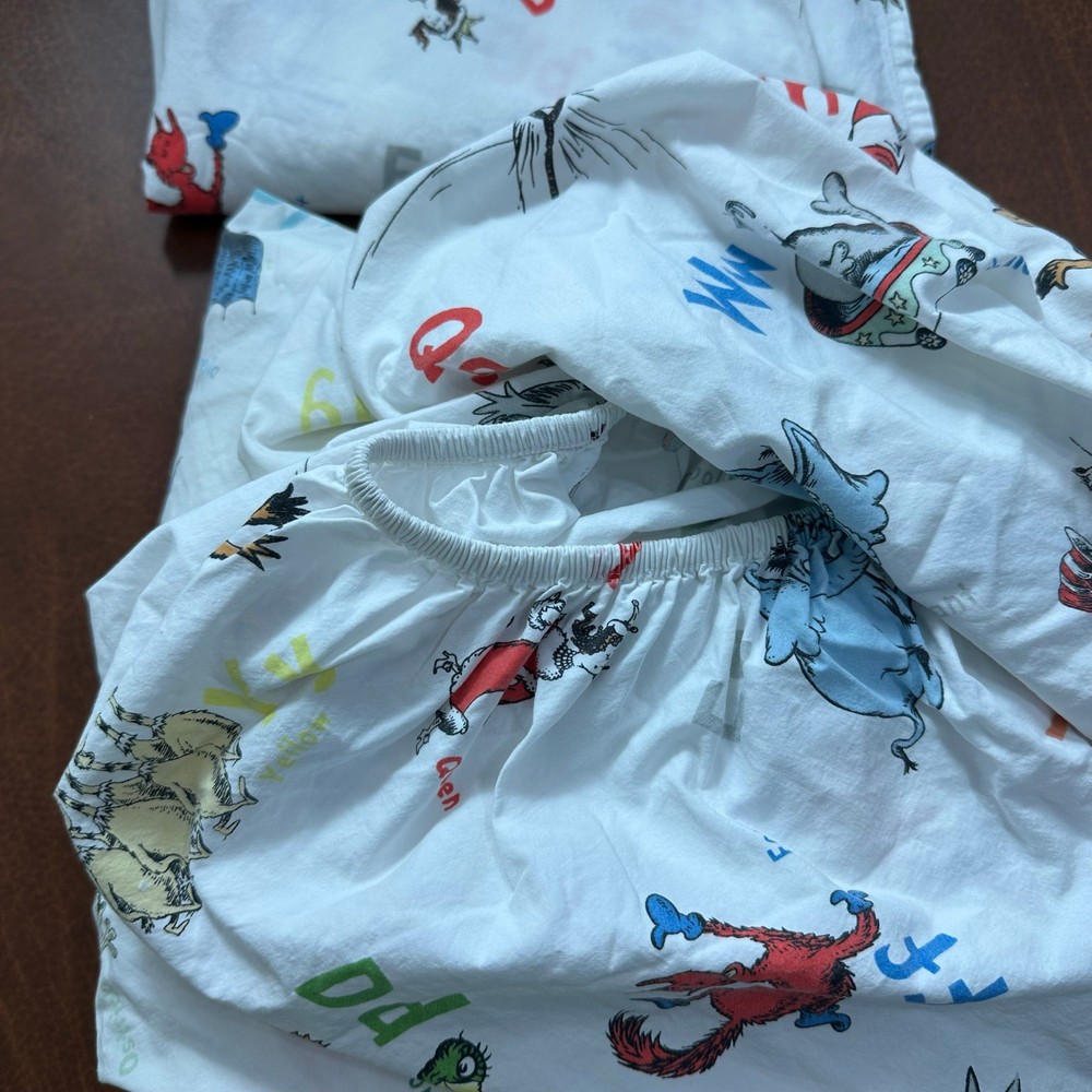 <![CDATA[<div>Pottery Barn Kids Dr. Seuss ABC Alphabet TWIN Sheet Set & Fitted Sheet Set year 2012 In good clean preowned condition