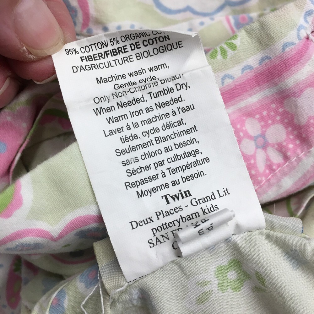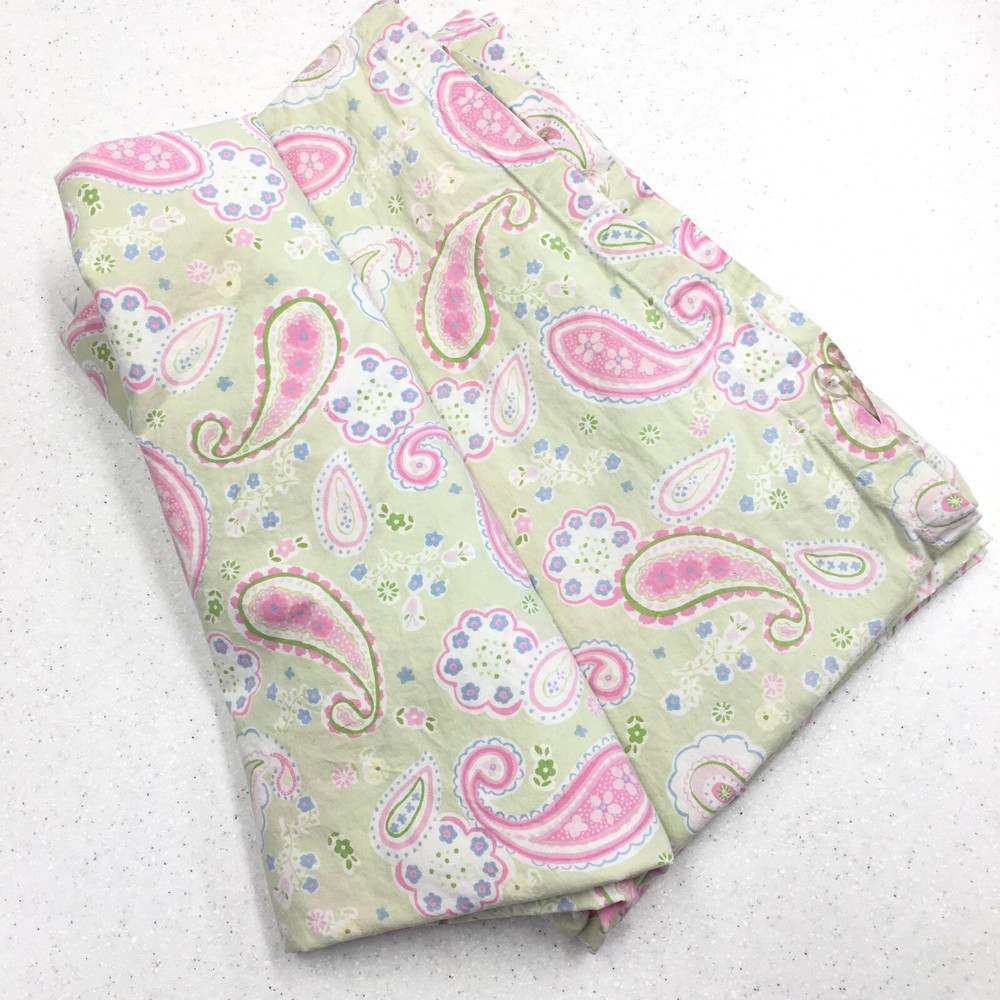 Pottery Barn Kids Duvet Cover Twin Bedding Paisley Pink & Green Button Closure 100% Cotton My Home is Pet & Smoke Free! 4A Box 1 0625-07 The Pottery Barn Kids Twin Paisley Duvet Set in Pink & Green is a charming addition to any child's bedroom. Made from 100% cotton, this duvet cover features a French Country style with a paisley pattern. The duvet cover has button closure for easy maintenance, making it both stylish and practical for young sleepers. Perfect for a twin-sized bed, this duvet set adds a touch of whimsy and comfort to any bedroom decor.