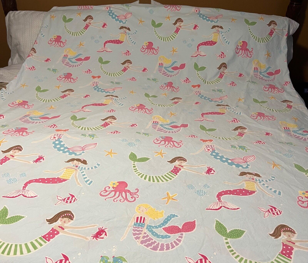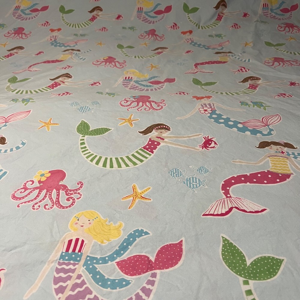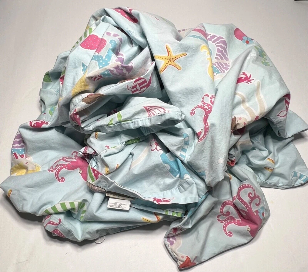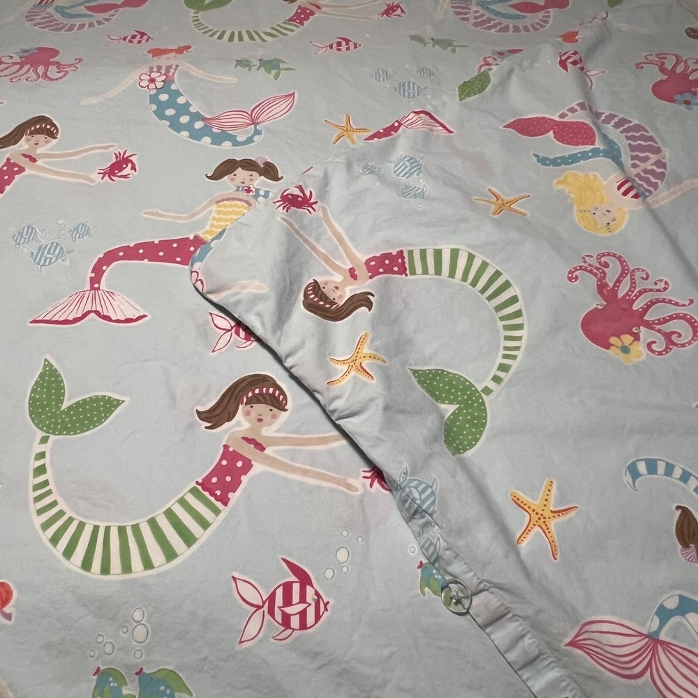 Transform your child's bedroom into an oceanic paradise with this Pottery Barn Kids Duvet Cover. Featuring a vibrant blue and pink color scheme and a fun mermaid pattern, this duvet cover is sure to delight your little one. Made from 100% cotton material, it is soft, comfortable, and durable. This duvet cover is designed to fit a twin size bed. Pre-owned, in good condition.