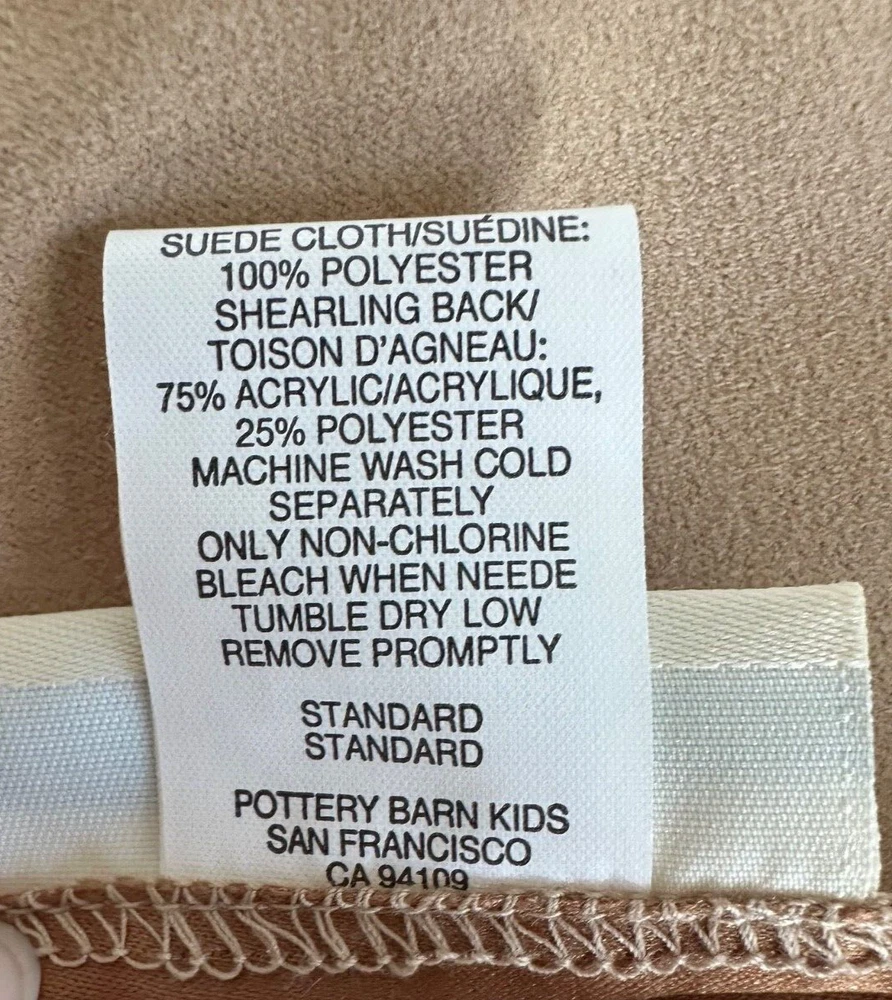 Multiple quantity ~ Sold Individually ~ Your choice of color: Camel, Lavender or Pink. (select from drop down menu) Pottery Barn Kids ~ FAUX SHEARLING / SUEDE SHAM. NEW (old stock) older hard to find items are new in original packaging. Faux Suede Cloth: 100% polyester. Faux Shearling: 75% acrylic / 25% polyester. Nice blend between luxurious suede texture and rustic shearling. Any questions, please ask prior to purchase. Please check out my other treasures! New and hard to find items listed weekly. I usually offer 4 shipping options, so please compare and select the best option for you. I am always happy to combine items to save you money on shipping costs. Please request PRIOR to making payment. Thank you for browsing my store, I greatly appreciate it!