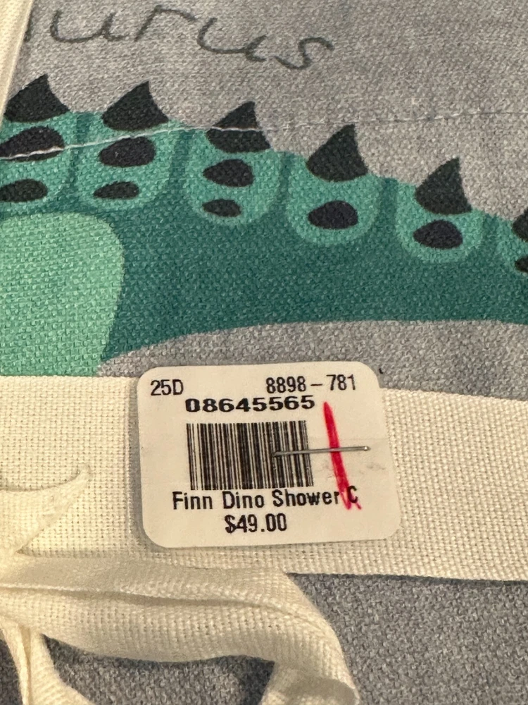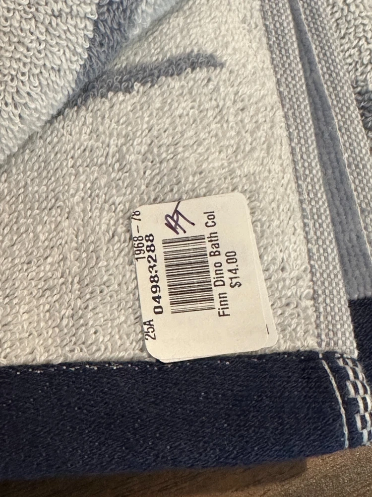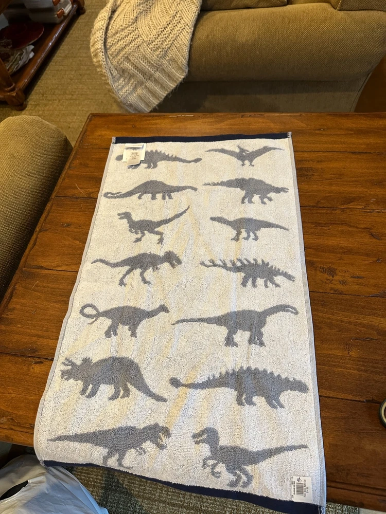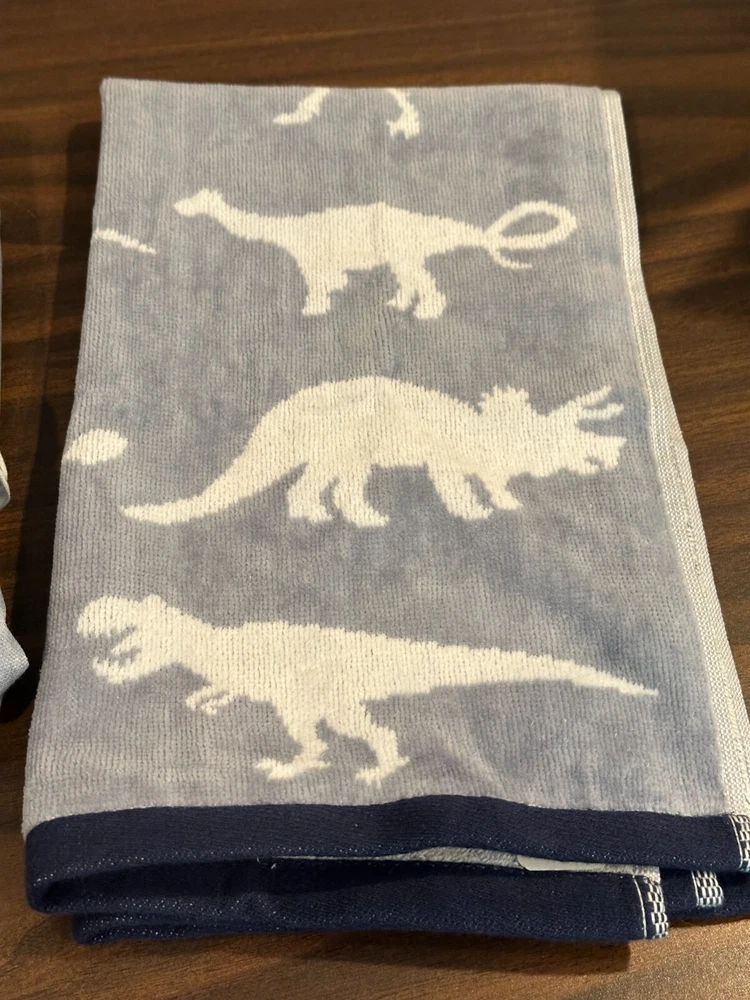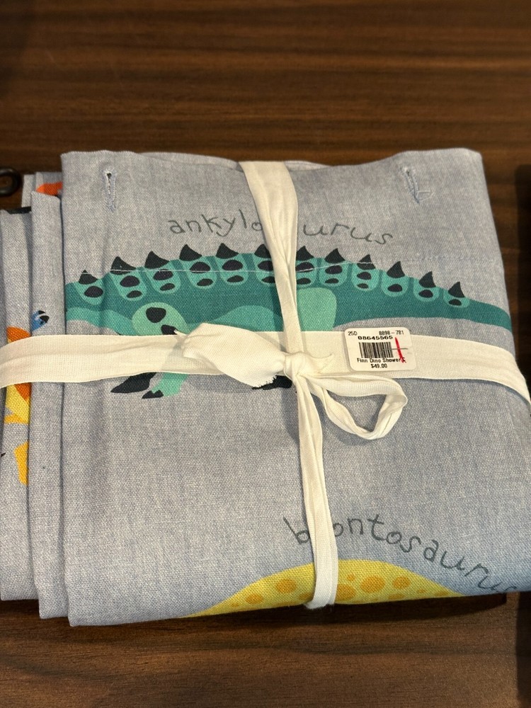 Pottery Barn Kids Finn Dino Dinosaur Shower Curtain + Finn Dinosaur Hand Towel 72 x72 NWOT both missing paper tags have price stickers.