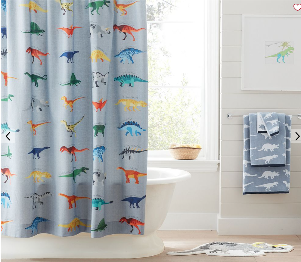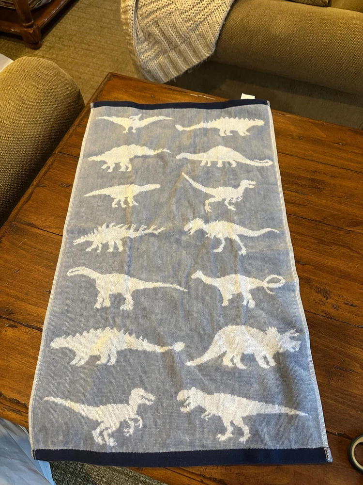 Pottery Barn Kids Finn Dino Dinosaur Shower Curtain + Finn Dinosaur Hand Towel 72 x72 NWOT both missing paper tags have price stickers....