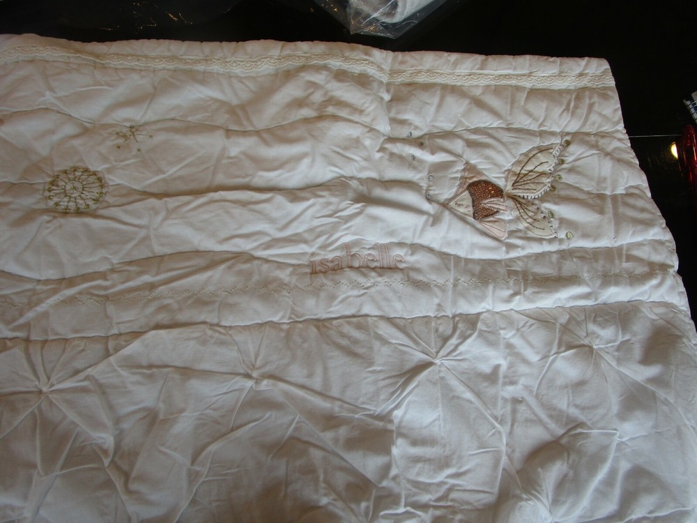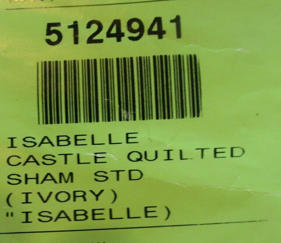 Up for auction - Pottery Barn Kids Isabelle Castle ivory standard sham quilted mono Isabelle smp We purchased many items that were only used for Pottery Barn photo shoot samples / product development . has numbers written on tag Smoke and pet free