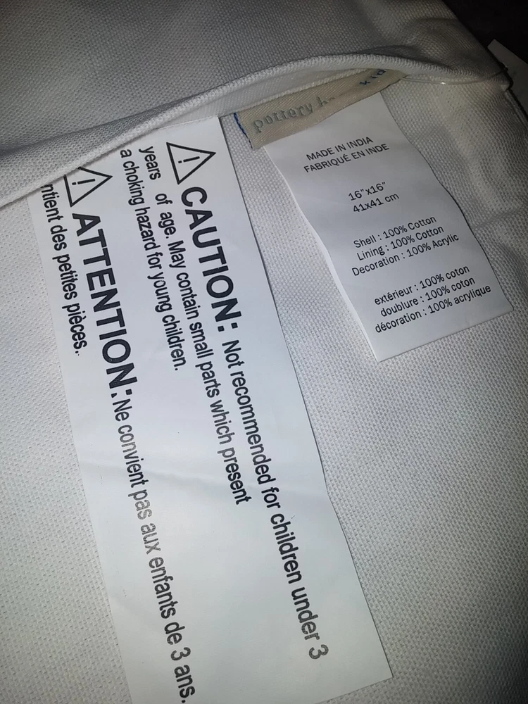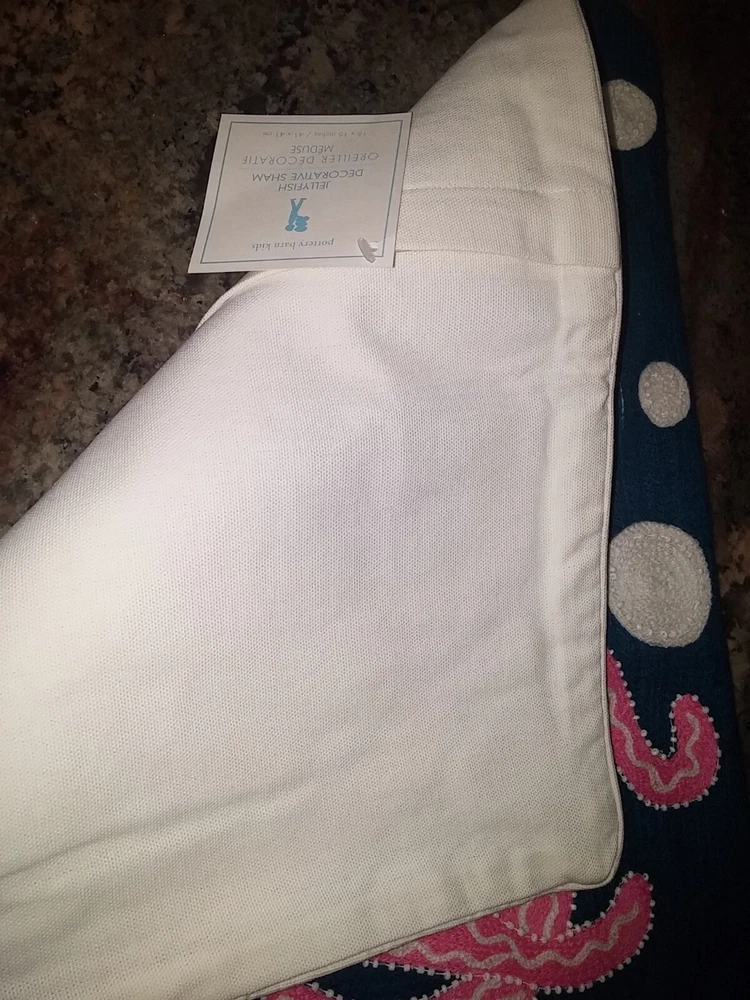 Pillow Cover only. 2nd photo is from Pottery Barn and shows this item I have for sale featured with the Breton Strip Bedding Set (no longer available) New in package and in New Condition. Tag photo calls it a sham, but I'm inclined to call it a Deco Pillow Cover Measures true to mfg tag of 16" square Has the envelope backside closure about midway on backside. Backside is white. 12oz Checkout my store for more PB!!