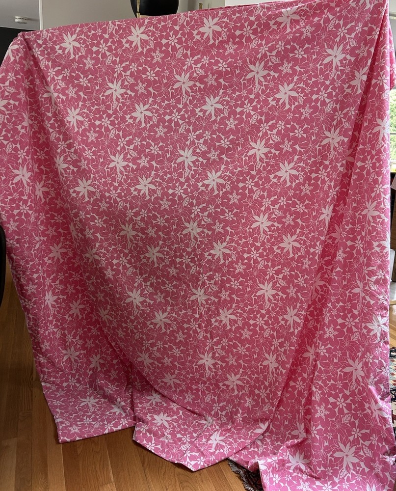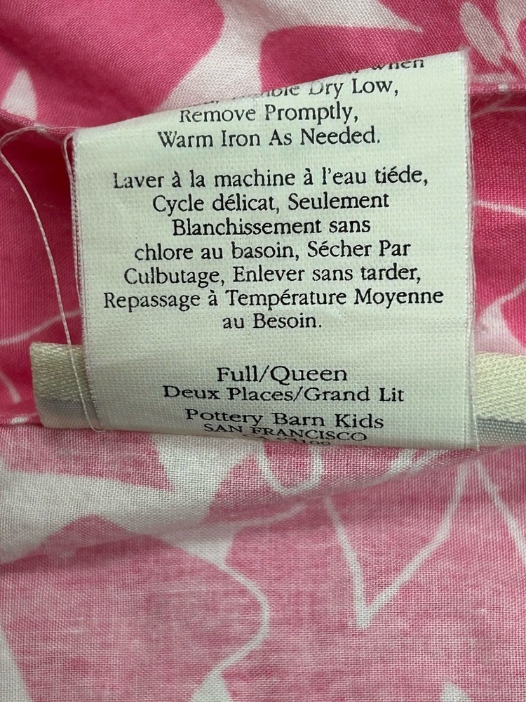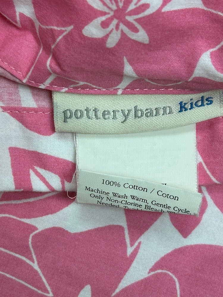 The Pottery Barn Kids Kelly Hot Pink White Tropical Flower Full Duvet Cover is a vibrant and colorful addition to any child's bedroom. Made of 100% cotton with a thread count of 200 or less, this duvet cover features a floral pattern in pink and white, perfect for a Hawaiian or tropical themed room. The set includes a duvet cover with buttons for closure and is branded by Pottery Barn, ensuring both quality and style for your child's sleep space.