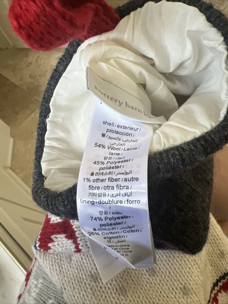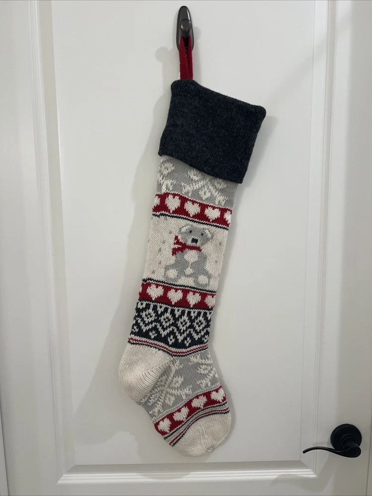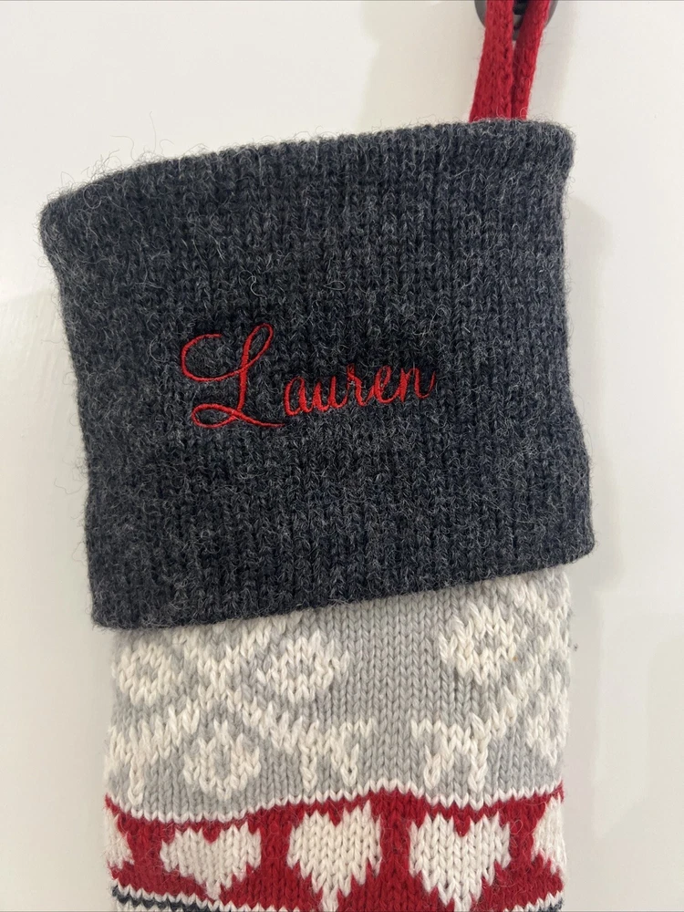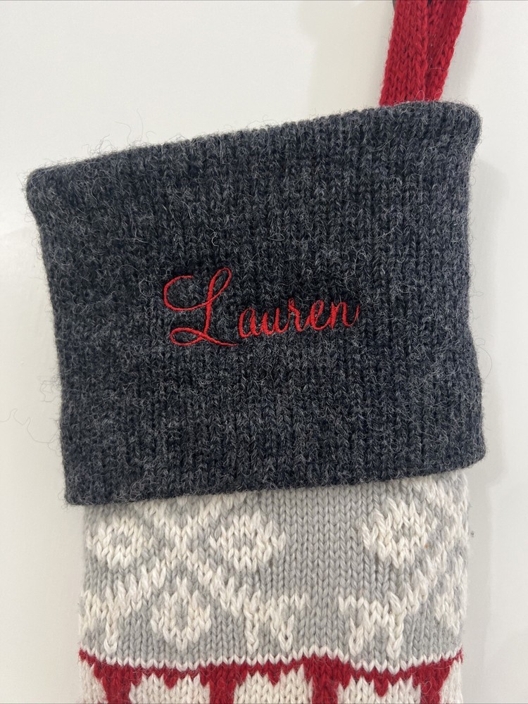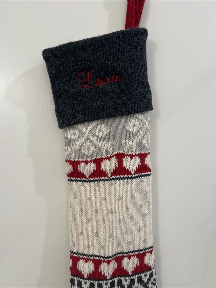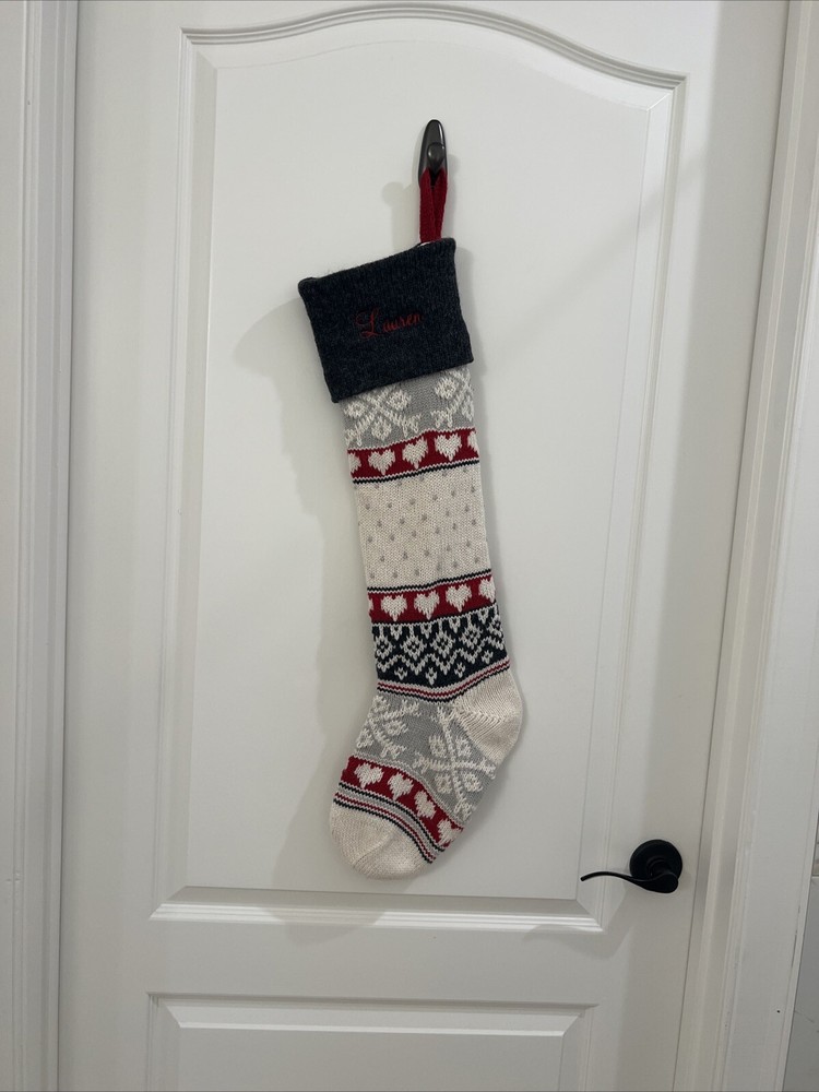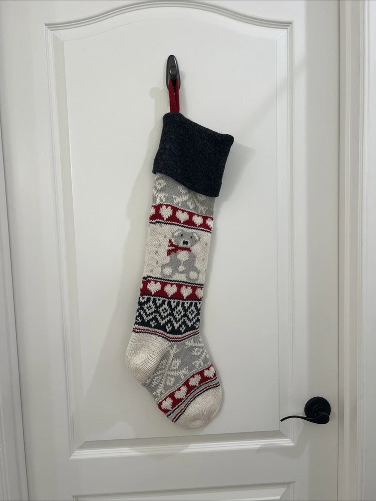 Pottery Barn Kids Fair Isle Bear large sweater Stocking. It was monogrammed on wrong side “ Lauren”. Can still be used on wrong side. The bear is on the correct side with no monogram. From Christmas season 2023. Listed as Preowned but not used 29” NOT including loop holder