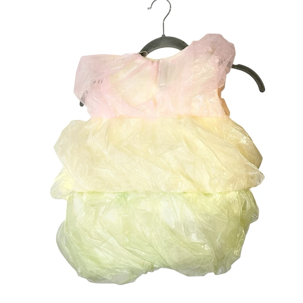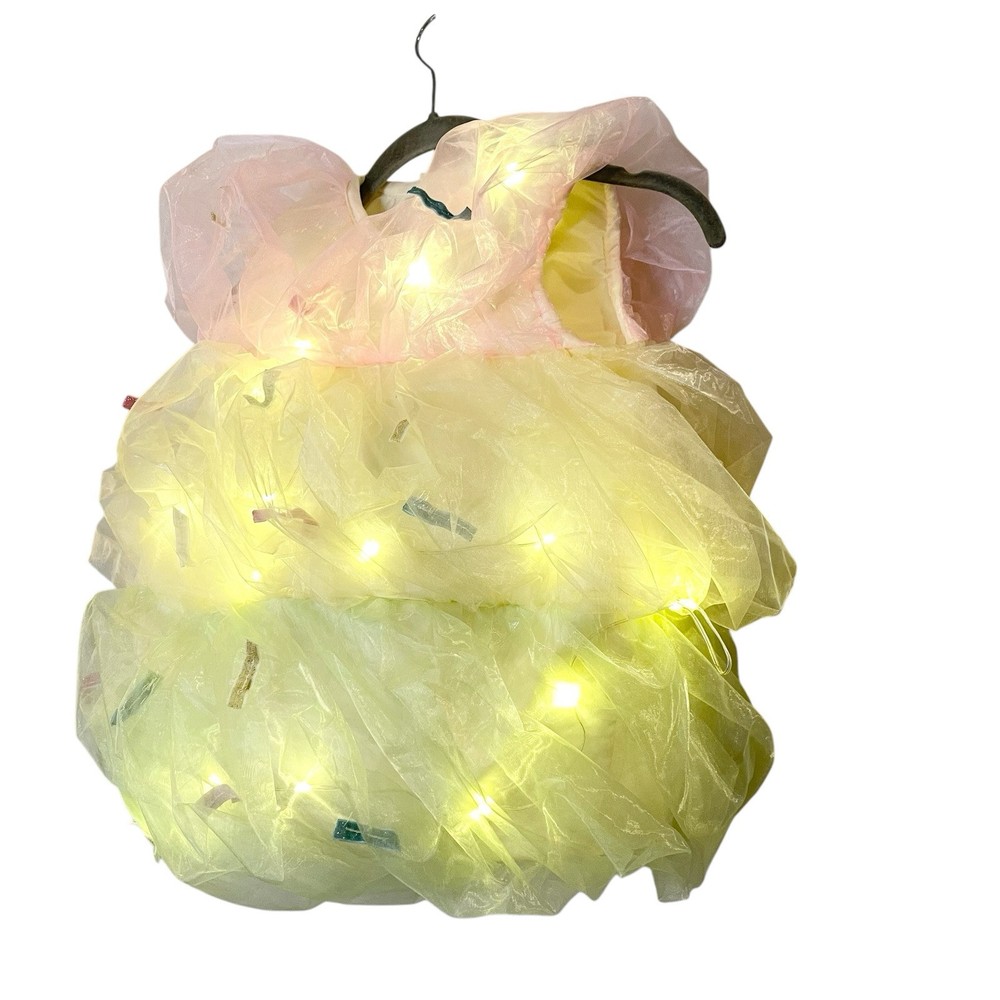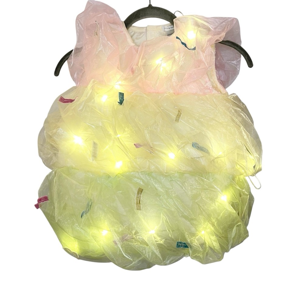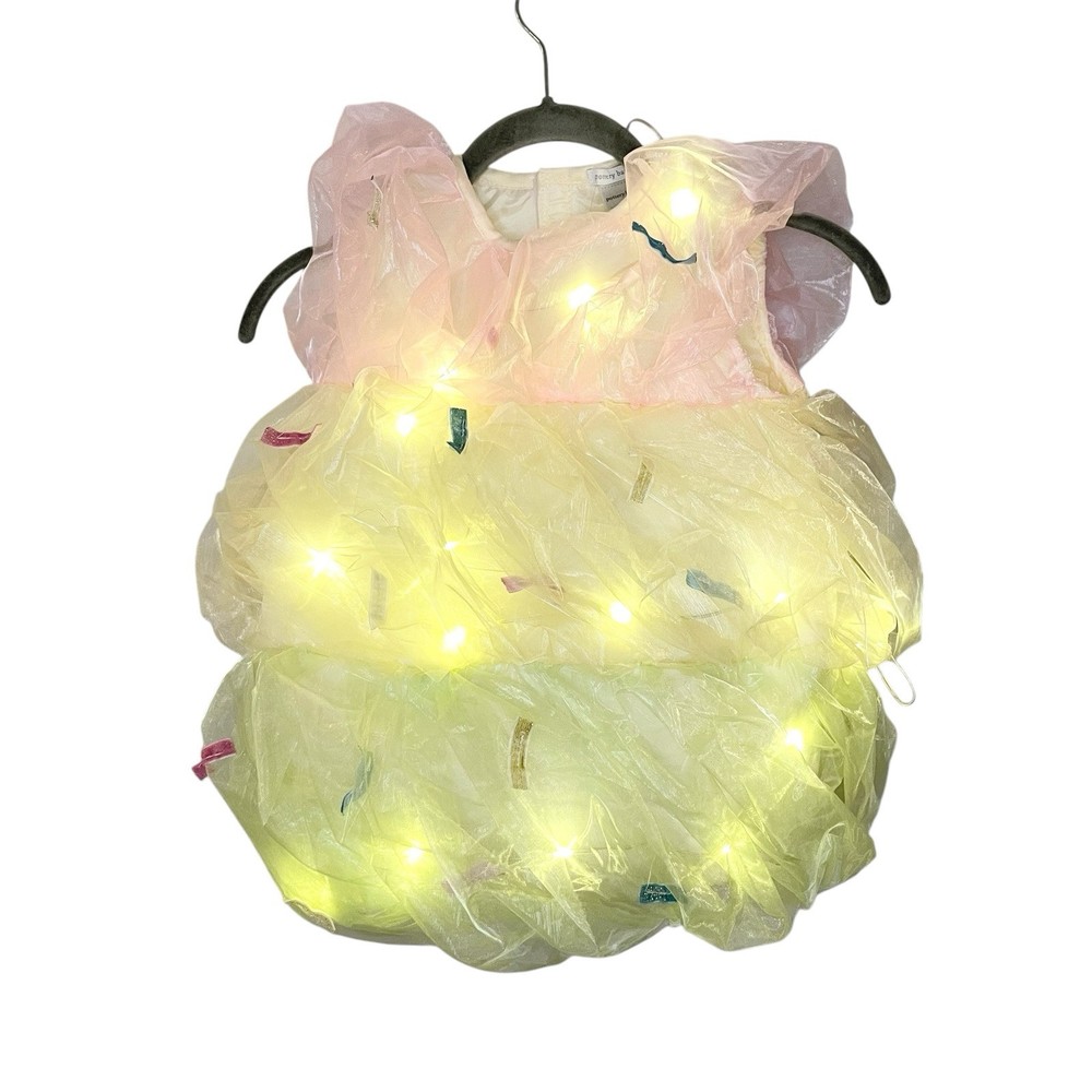 Excellent pre-owned condition, no flaws or stains 13" armpit to armpit 18" long Pottery Barn Kids offers a Light-Up Triple Scoop Sundae Costume in size 3T for girls. This Halloween-themed costume features a multi-color design made of organza material. Please note that the costume does not include a hat. Perfect for little ones looking to dress up in a fun and sweet ensemble for Halloween festivities.