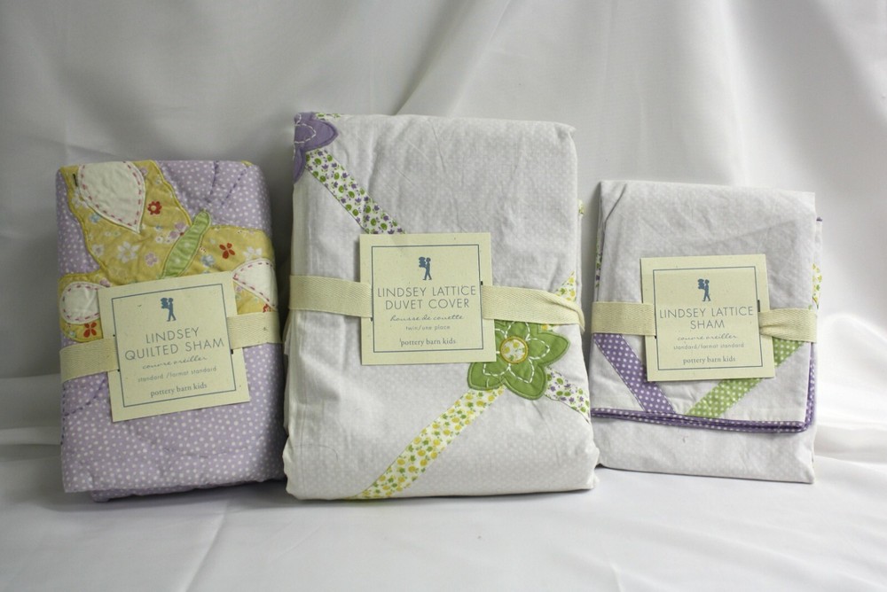 Pottery Barn Kids Lindsey Lattice Duvet Cover with Quilted Sham AND Sham Twin Machine Washable Warm with like colors do not bleach tumble dry low, remove promptly warm iron if needed NIP We are available for questions Monday through Friday during business hours for specific questions about any items, shipping and more. E-bay considers a 5 Star feedback standard for all purchases. If for any reason you have any concerns with your purchase(s), please let us know directly and soon after receiving your purchase and we will do our best to work out a solution. Most of our transactions go smoothly as you can see through our great feedback scores however occasionally errors or misunderstandings can occur in our listings so please let us know! Returns and exchanges are accepted however the item must be in the same condition that it was sent. For example it must still have the tags attached and not be worn or laundered. Return shipping is the responsibility of the buyer. All of our packages are tracked domestically and some internationally as well. We combine shipping costs whenever possible so please request an invoice when purchasing multiple items as sometimes the e-bay calculation is higher than our shipping cost and we want to pass the savings back to you. Please make sure that you have your correct address on file with Pay Pal when placing your order. Overnight shipping is available Monday through Thursday if you order in the morning. Please contact us for details. For INTERNATIONAL BUYERS, your purchases are sometimes held at your post office for pick up and additional taxes may be due and payable to them. These additional costs vary by country and it is your responsibility to understand what and when these additional charges may be required prior to purchase.