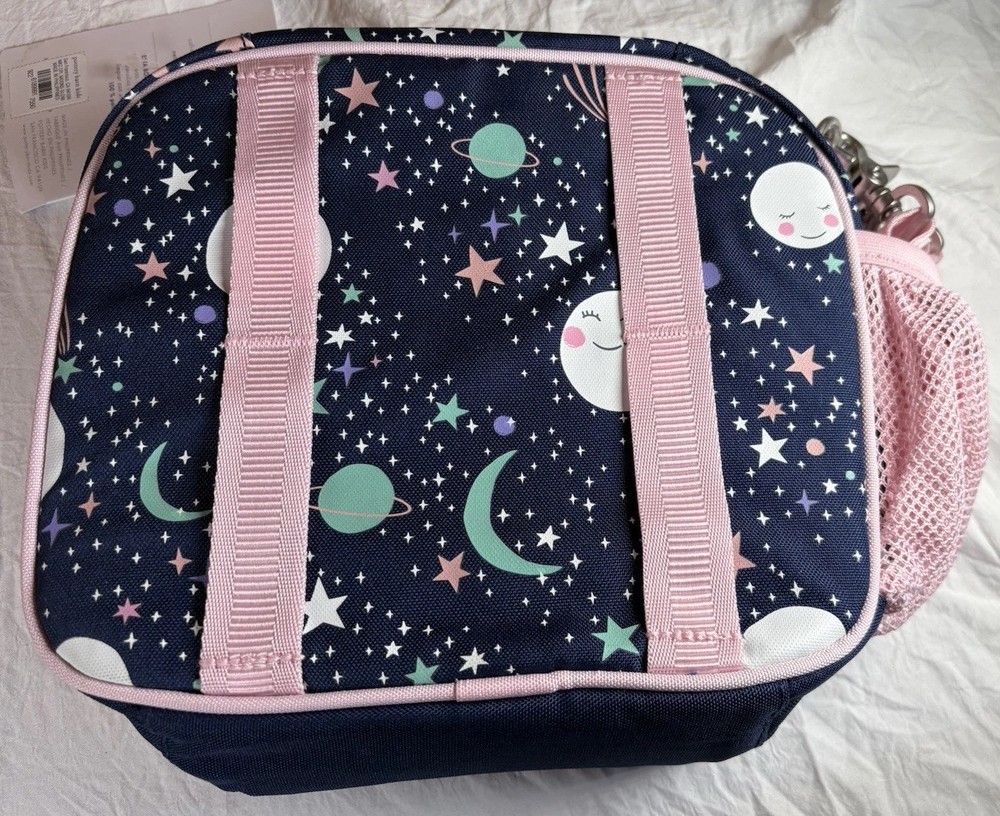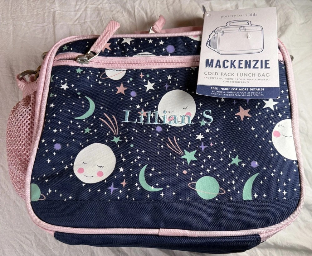 This Pottery Barn Kids Mackenzie Glow Moons Box Cold Pack is perfect for your little one's lunch and snacks. With its vibrant and colorful design, your child will be excited to bring this lunch box to school. The box is made of high-quality materials, ensuring that it will last for a long time. Measuring 7.75 inches in height and 9.25 inches in width, this lunch box is just the right size for kids. It features a space theme that your child will love, and the embroidered Lillian S NWT will make it even more special. This lunch box is perfect for any kid who loves to bring their lunch to school in style.